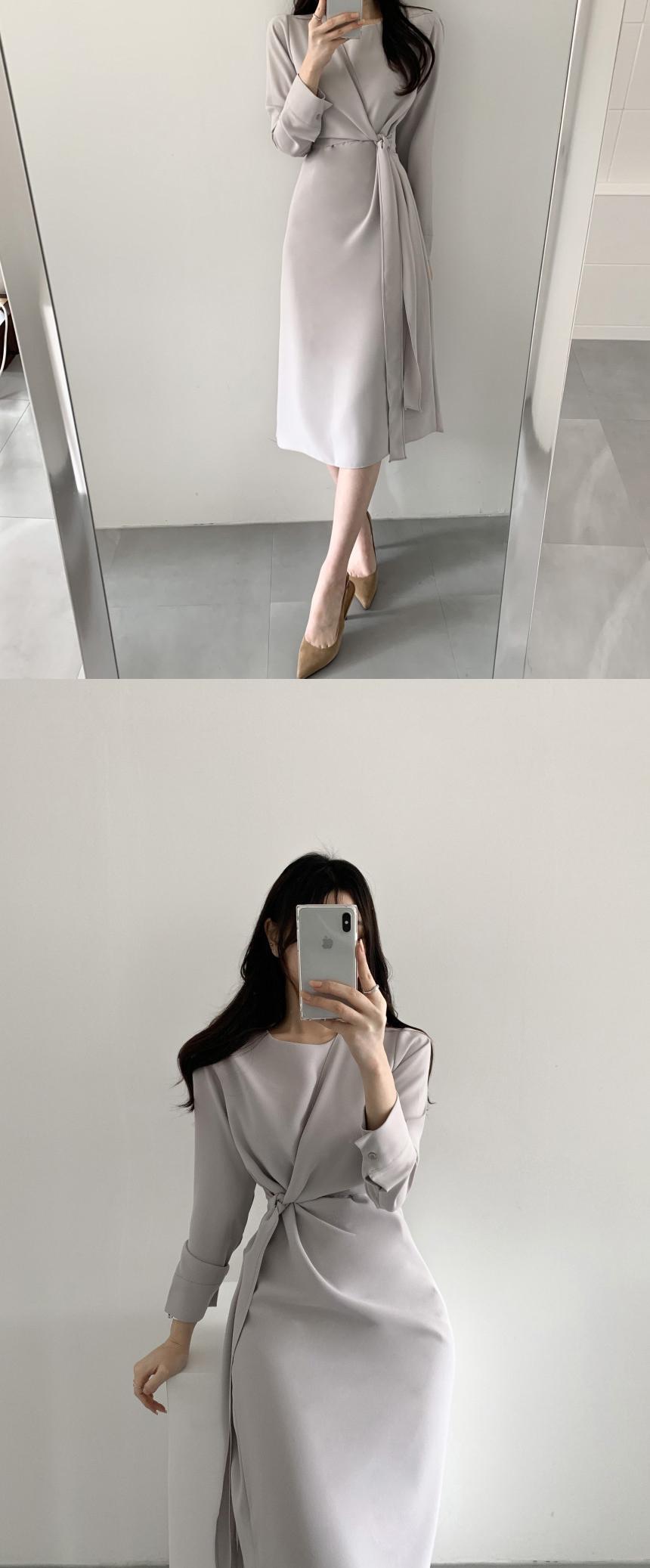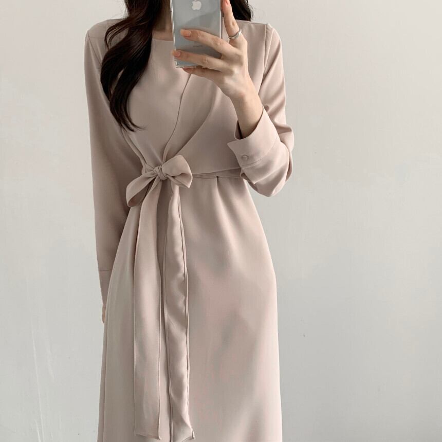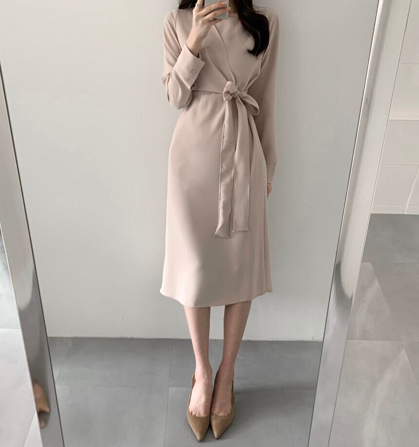 スタンダード薄手Vネックドレス ロング レトロ スカート 韓国婦人94847517836