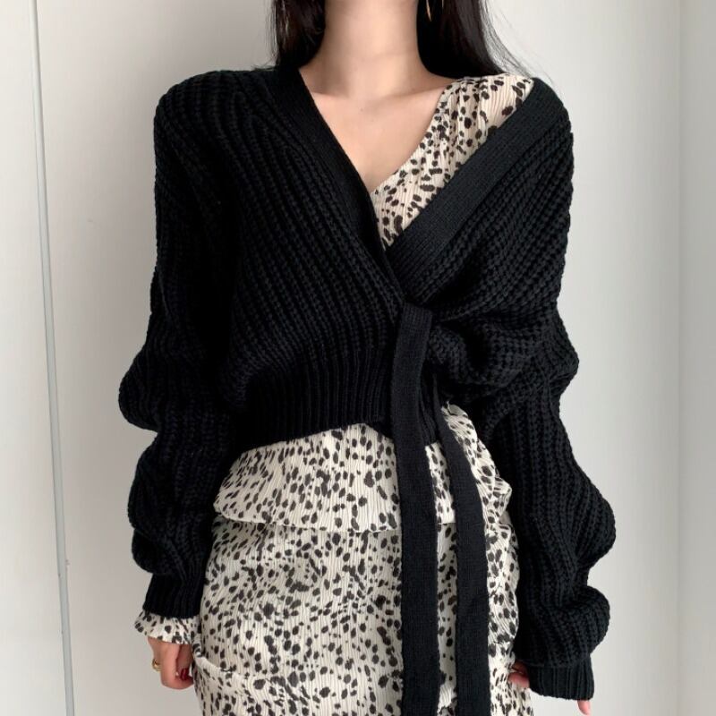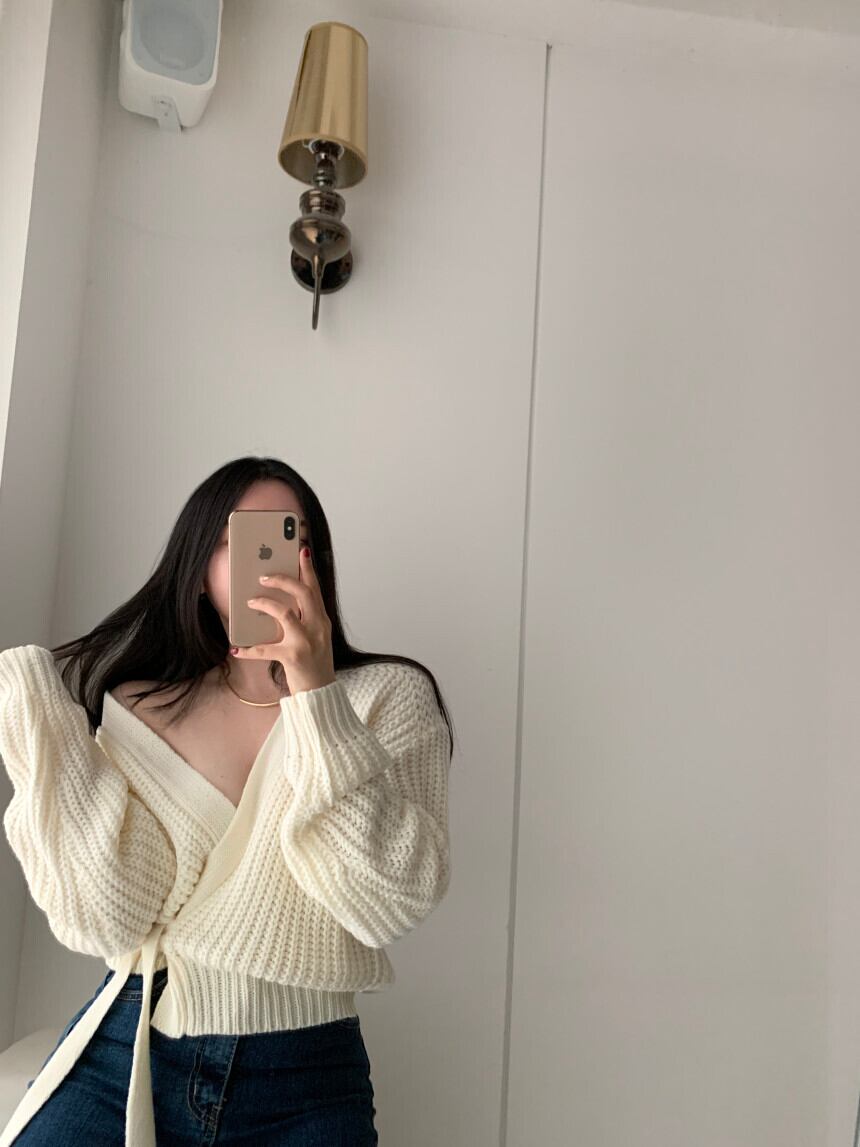 ウールセーター ホワイトVネックサイドレースウェストオータムカーディガンジャケット 秋物 韓国婦人72809770783