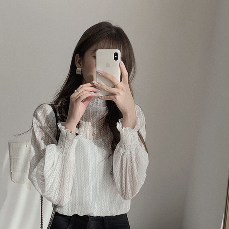 スタンダードメッシュレーススタイル レトロ ブラウス 韓国婦人14567115362