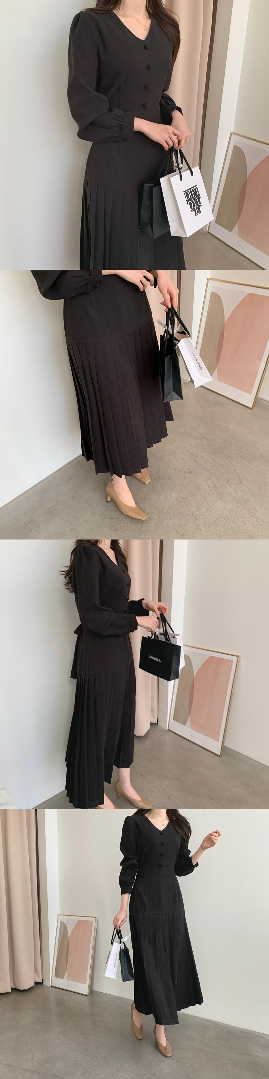 スプリングVネックストラップ ロング薄手ハイウェストウェストプリーツドレス レディース 春物 韓国婦人26274186574