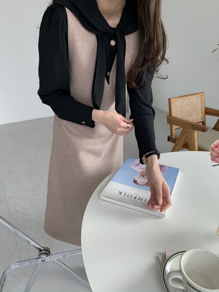 カラーリボンルーズシャツ スプリング ロング 春物 韓国婦人93683215796