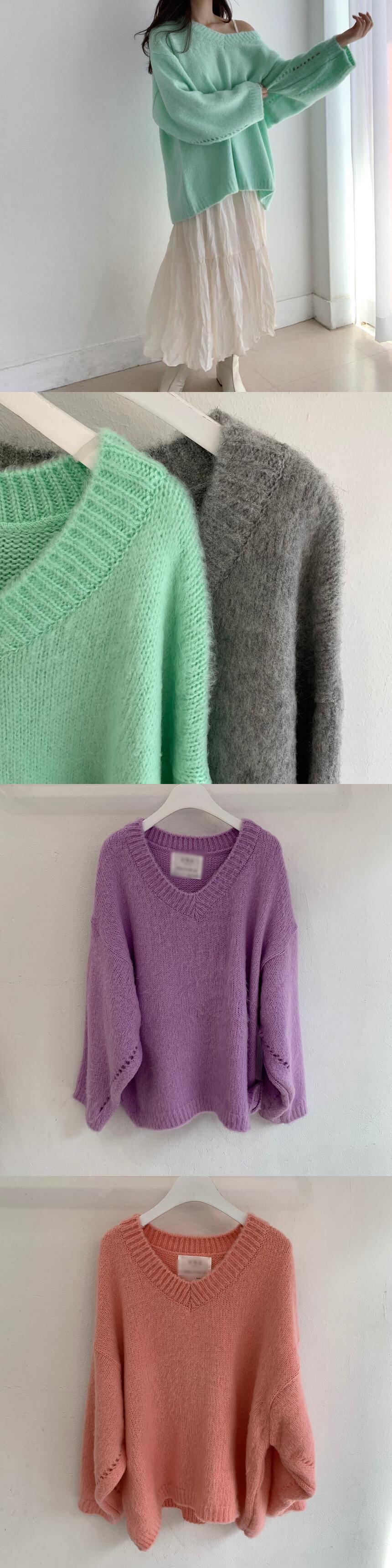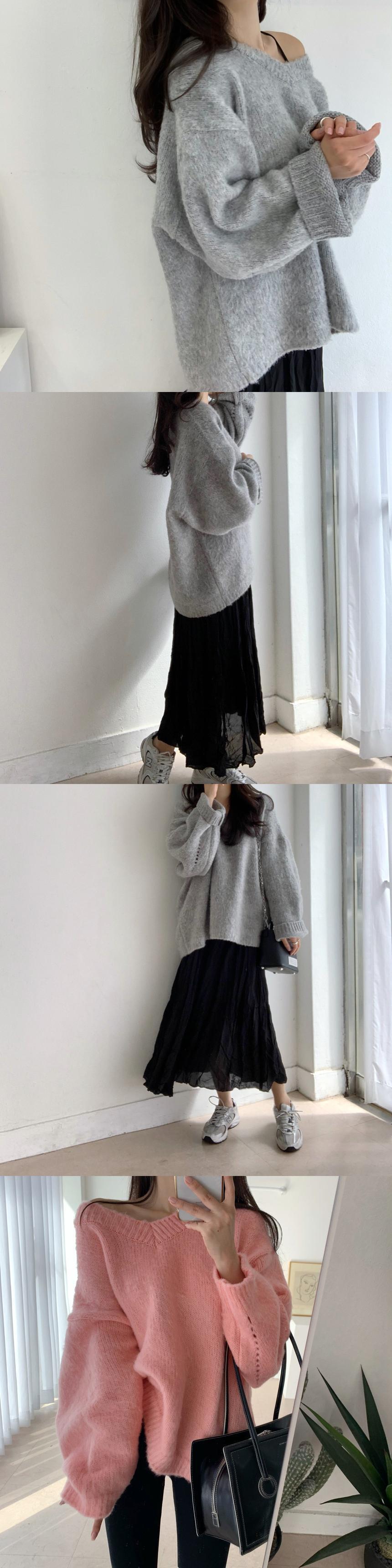 スプリングオータムスタイルVネックルーズニットセーター レディース ロング 春物 秋物 韓国婦人64955241438
