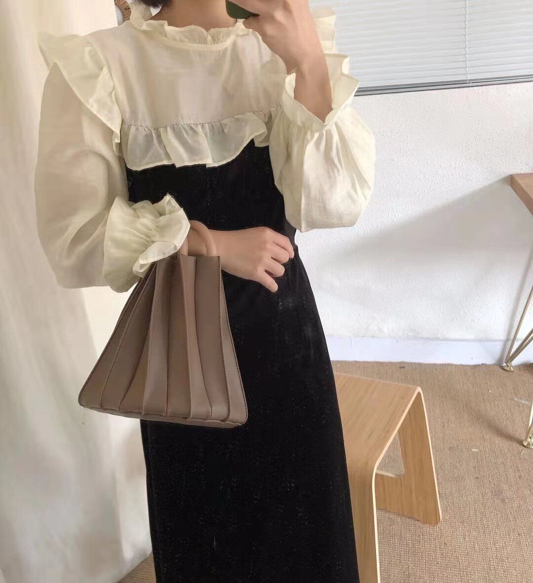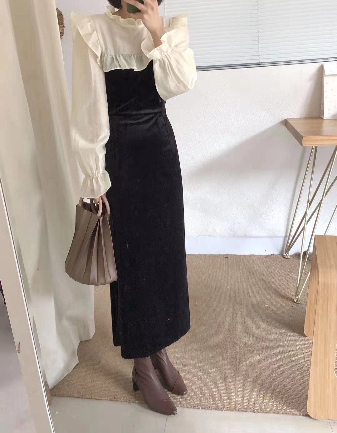 スプリングカラーウェストドレス 春物 韓国婦人23035955036