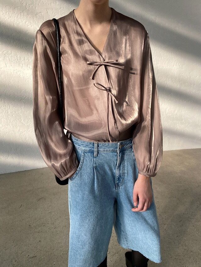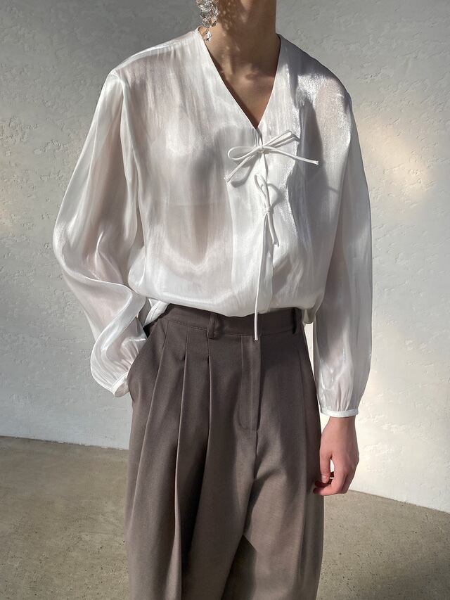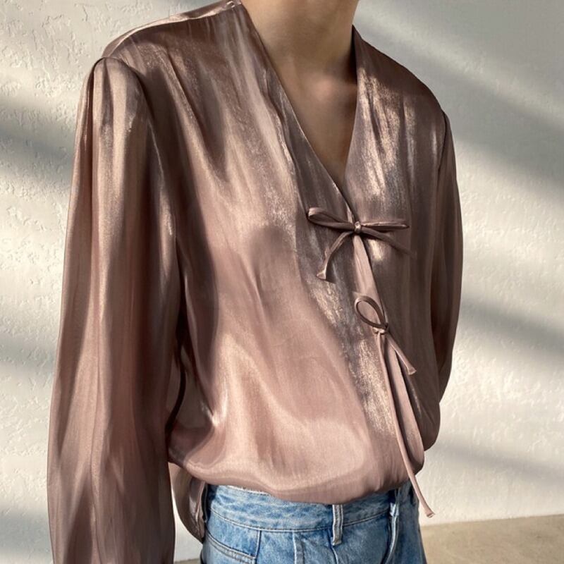 スプリングスタイルVネックルーズソリッド カラーシャツ トップス レディース レース 春物 レースアップ ソリッドカラー 韓国婦人63277426477