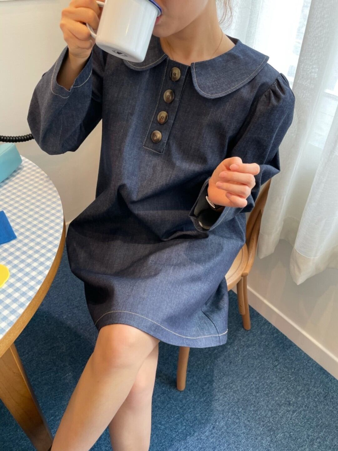 スプリングスタンダードカラールーズ薄手スリーブドレス ショートスカート レトロ 春物 韓国婦人67070229154