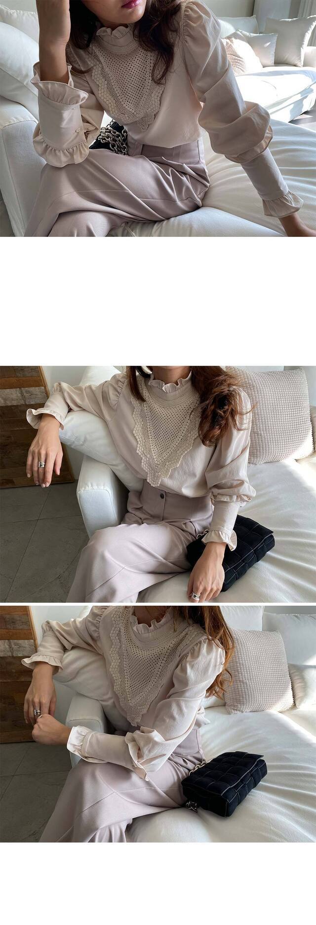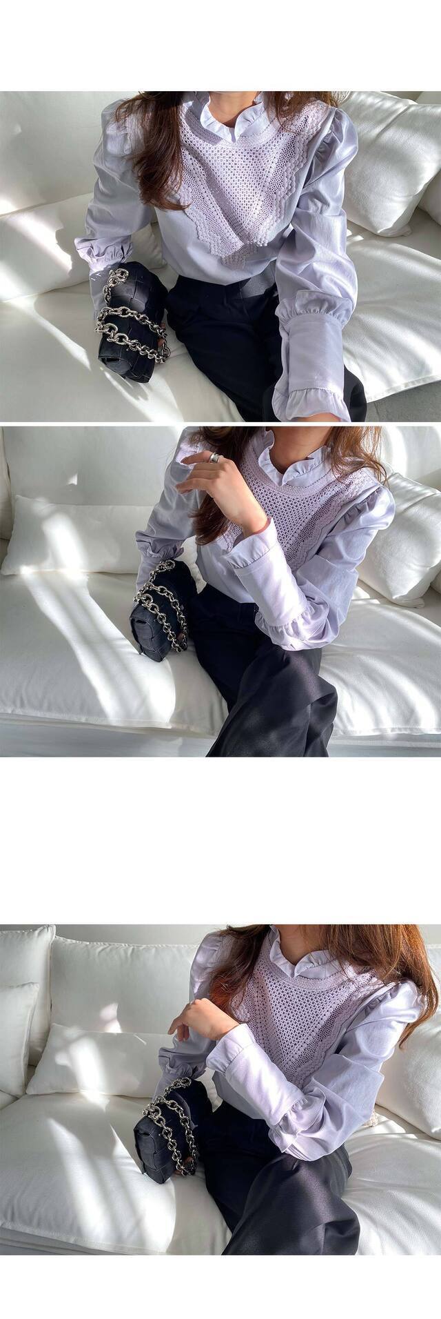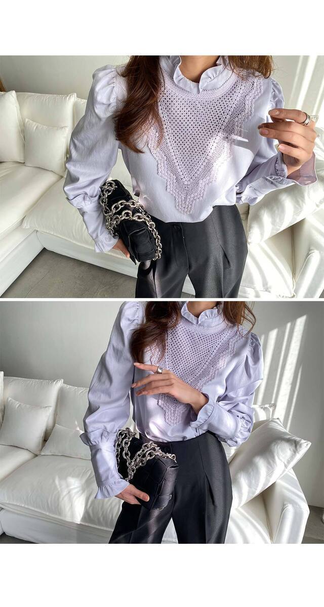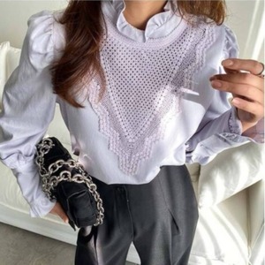 スプリングスタイルカラーレースソリッド シャツ トップス レディース 春物 ソリッドカラー ステッチ 韓国婦人65401887911