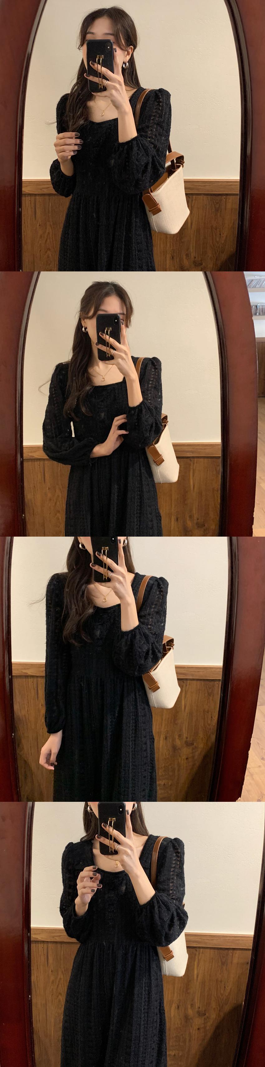 スプリングスタンダードカラーハイウェストレースドレス レディース ロング レトロ 春物 スクウェア 韓国婦人16636051926