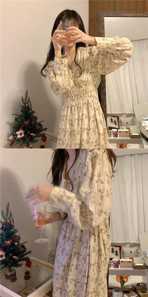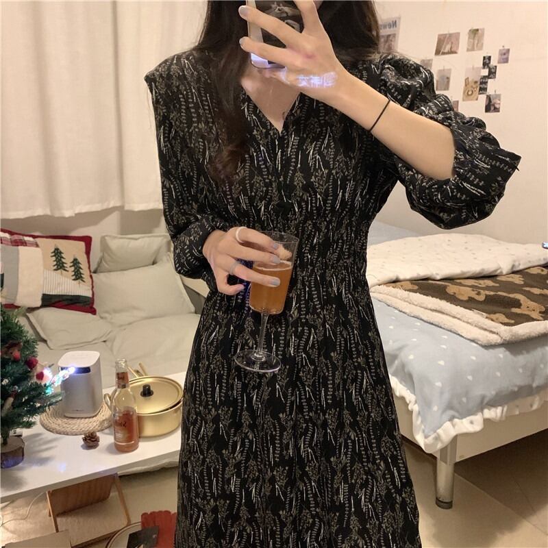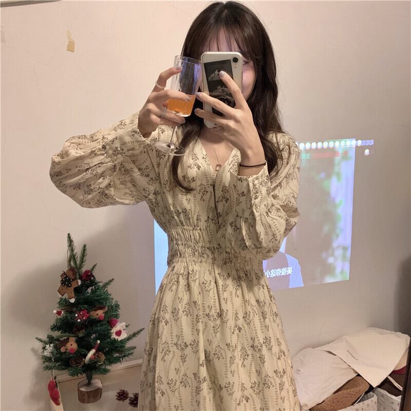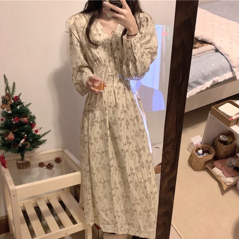 スプリングスタイル薄手スタンダードフローラルロングスカート ドレス レトロ 春物 花柄 韓国婦人97583785393