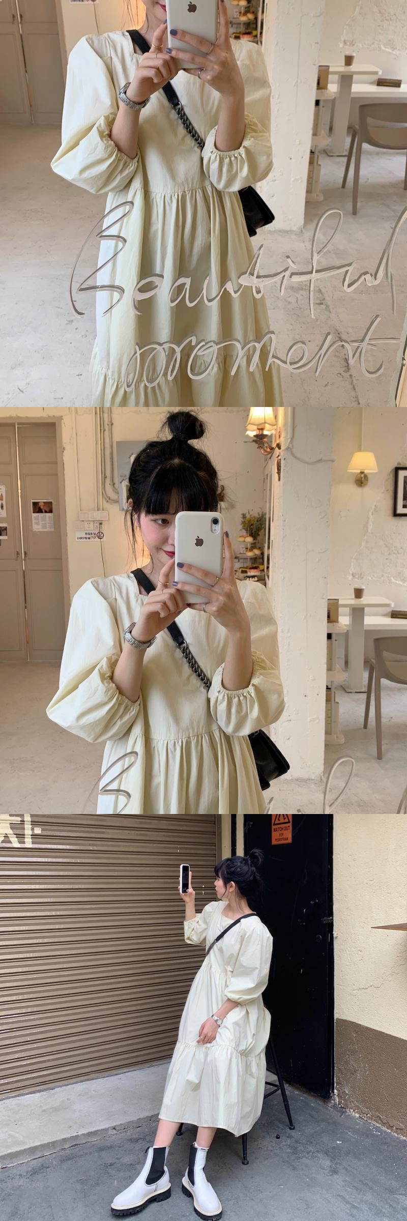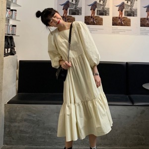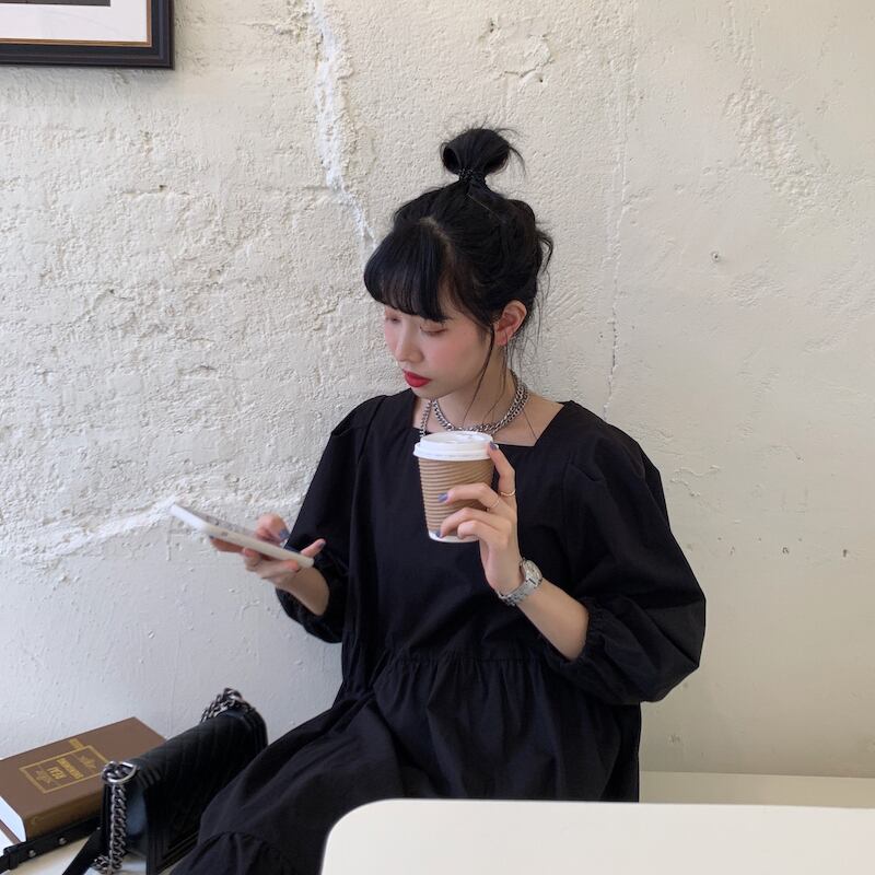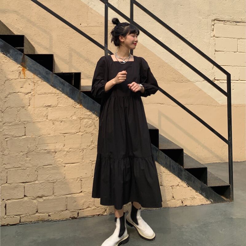 プリーツルーズウェストドレス レディース 大人ガーリー スウィート キュート カジュアル スクウェア 韓国婦人18976357841