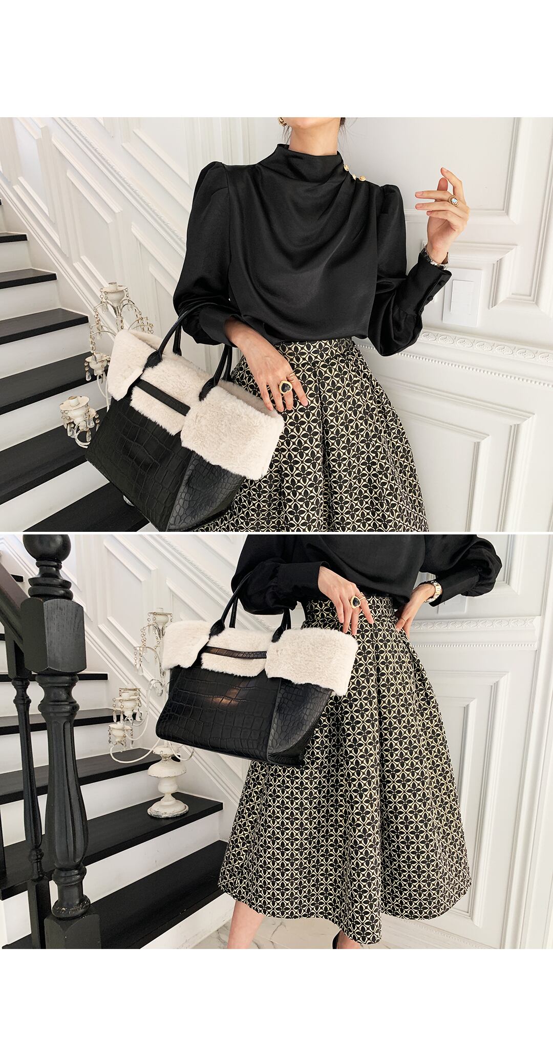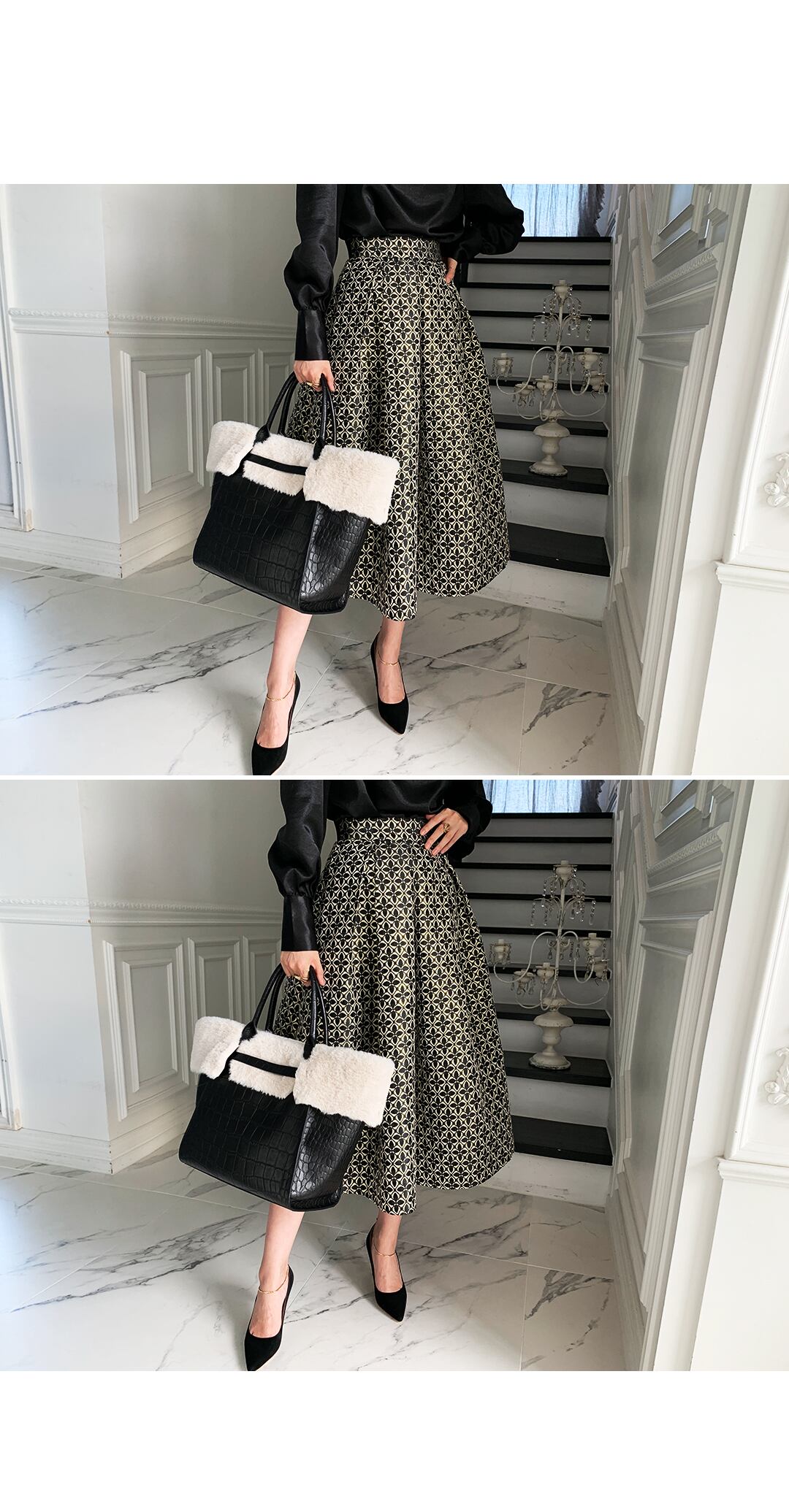 スプリングシャツ ゴールドラインジャカードハイウェストウェストスカート ロング 春物 韓国婦人55717030324