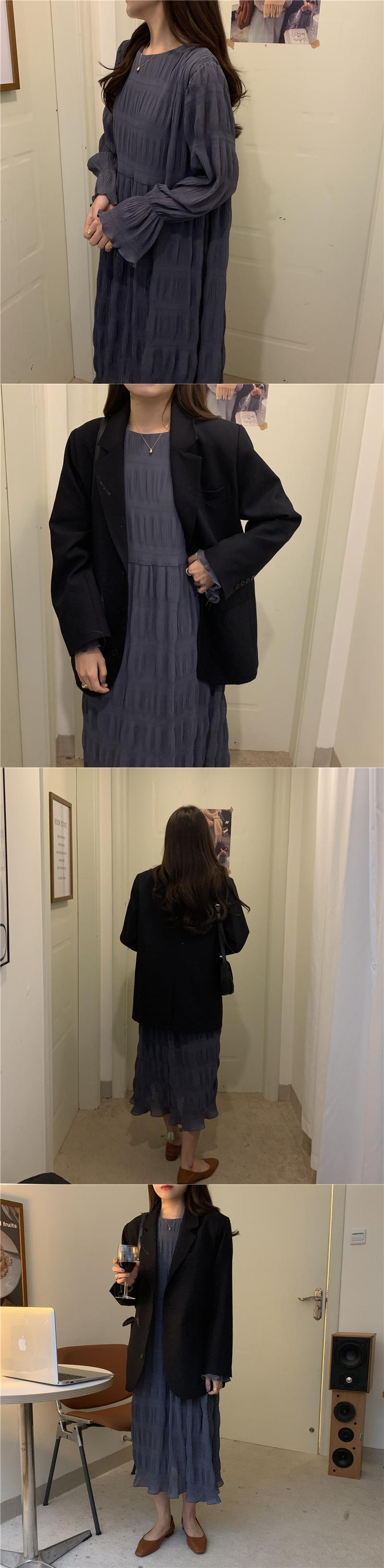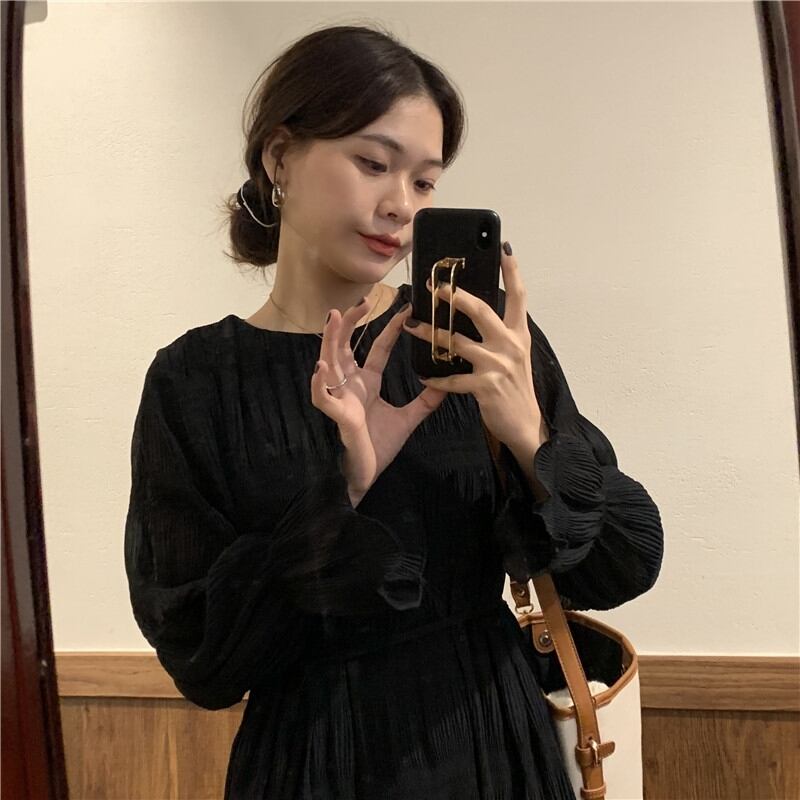 スプリングオータムレースプリーツシフォンドレス ロングスカート 春物 秋物 韓国婦人2345409024