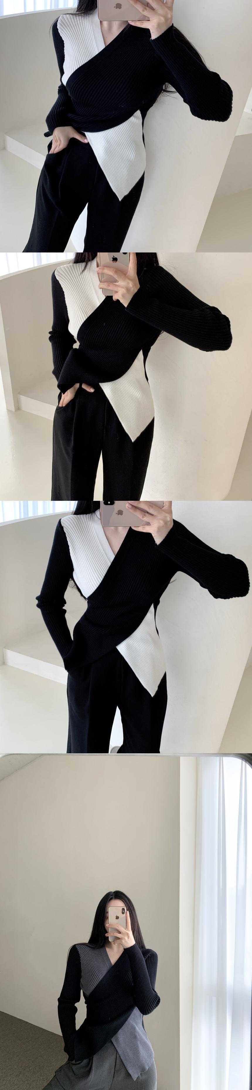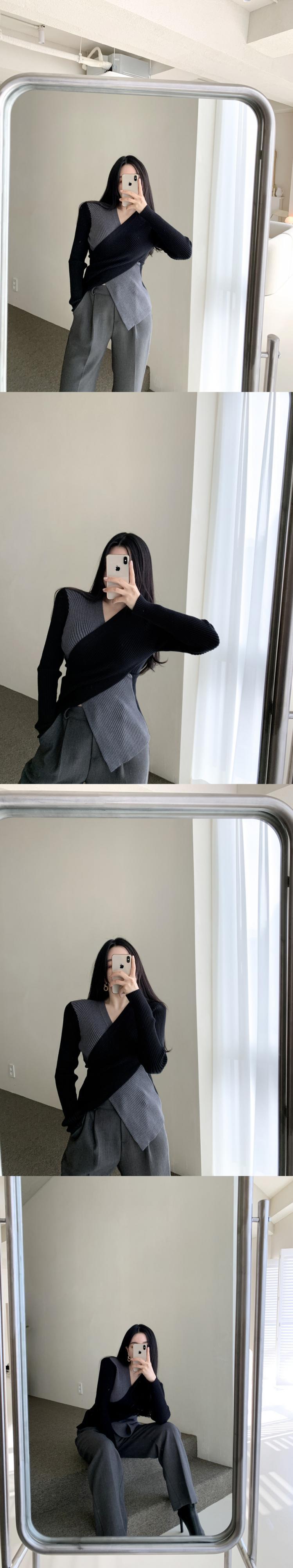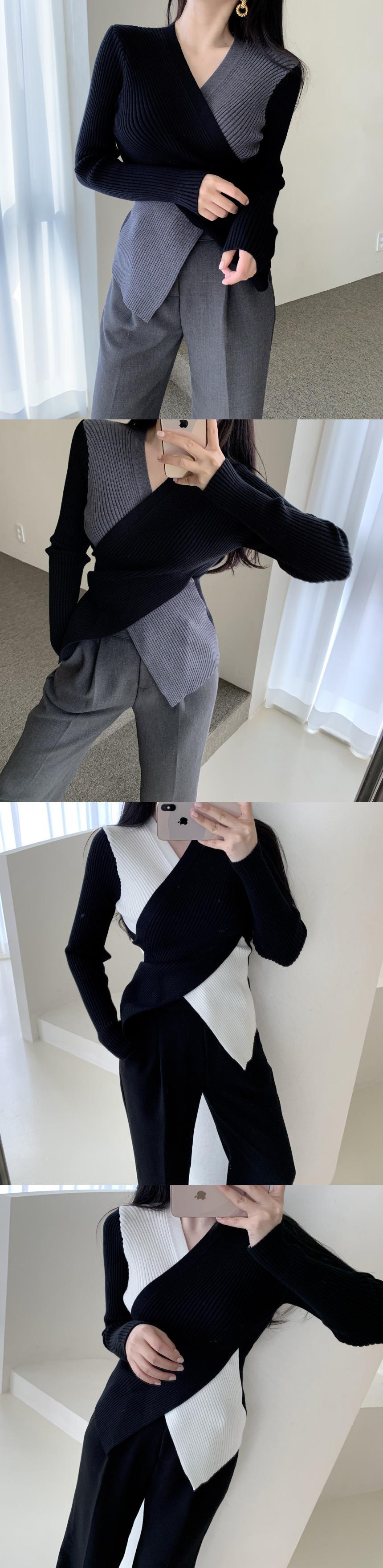 クロスVネックニットシャツ スプリングオータムスリムセーター ロング 春物 秋物 韓国婦人83705193217