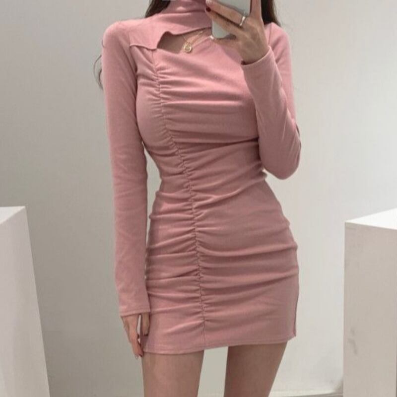スプリングカラーウェストドレス ロング 春物 韓国婦人66070348061