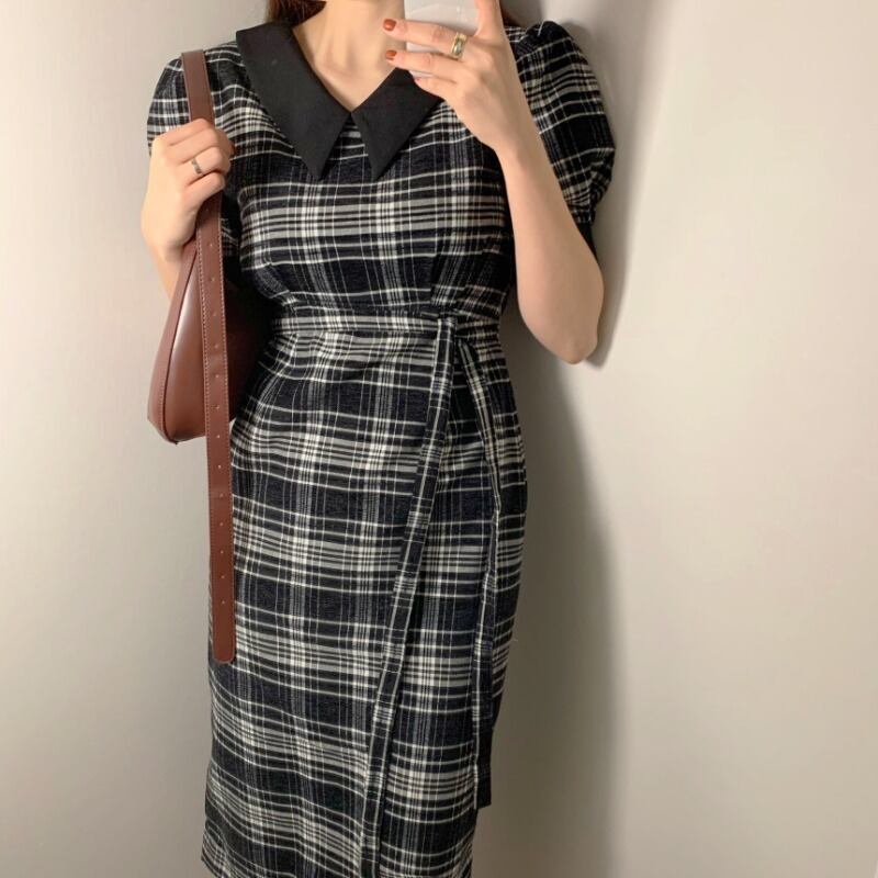 スタンダードカラーウェストドレス ロングスカート レディース レッド レトロ レース レースアップ 韓国婦人34822753116