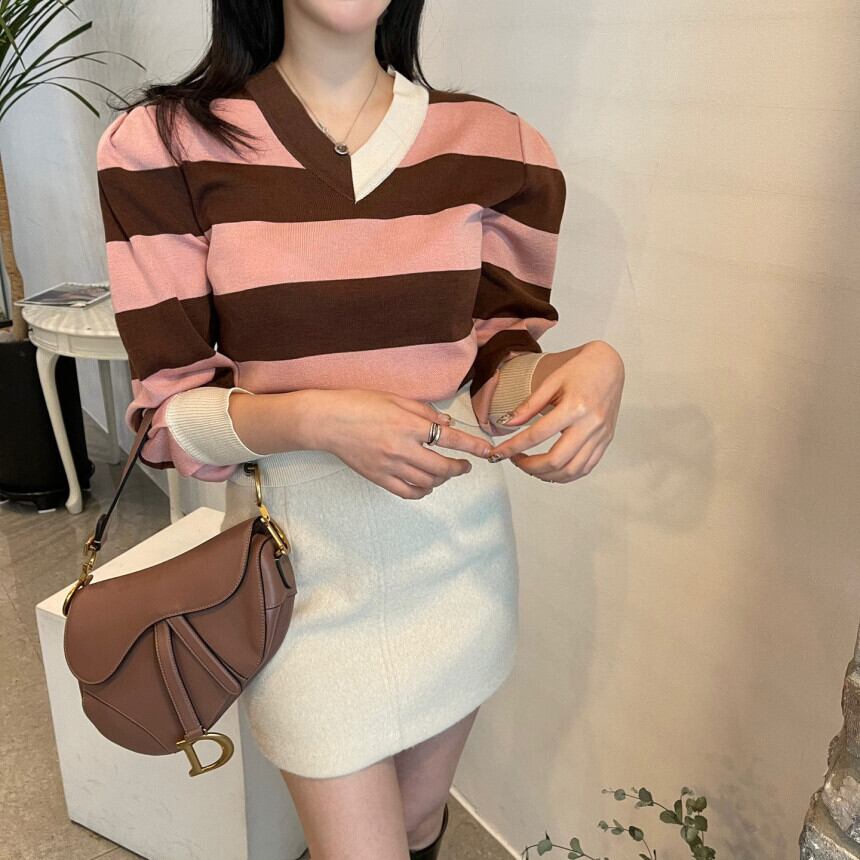 スプリングカジュアルカラー薄手ストライプシャツ セーター レディース 春物 韓国婦人61962231553