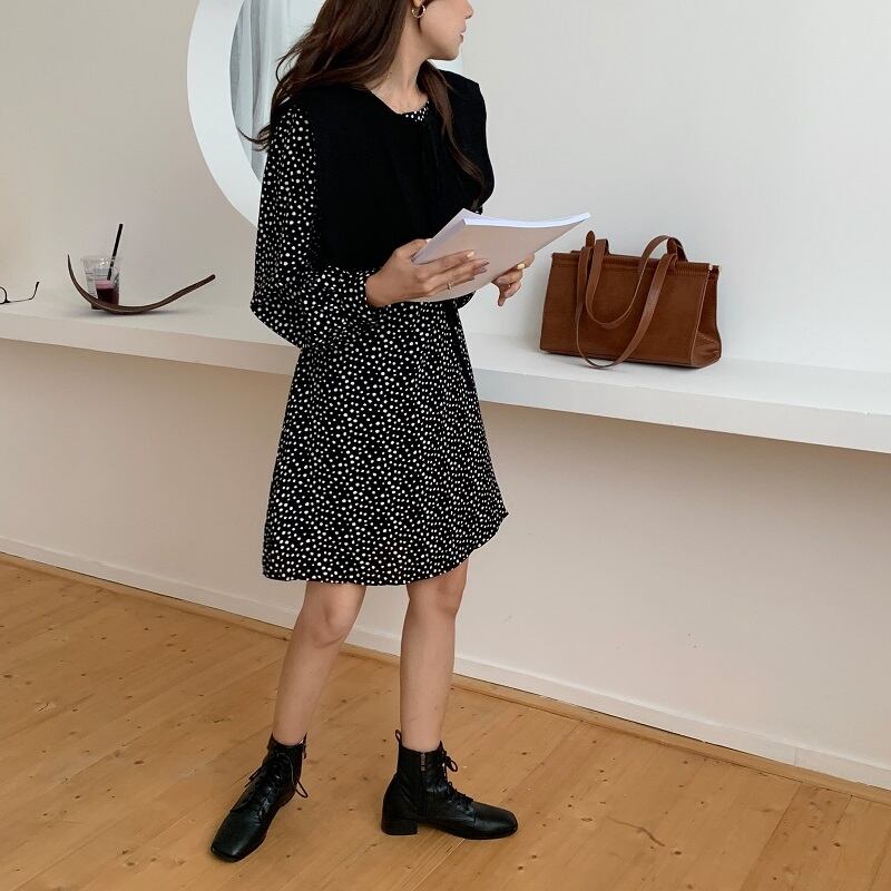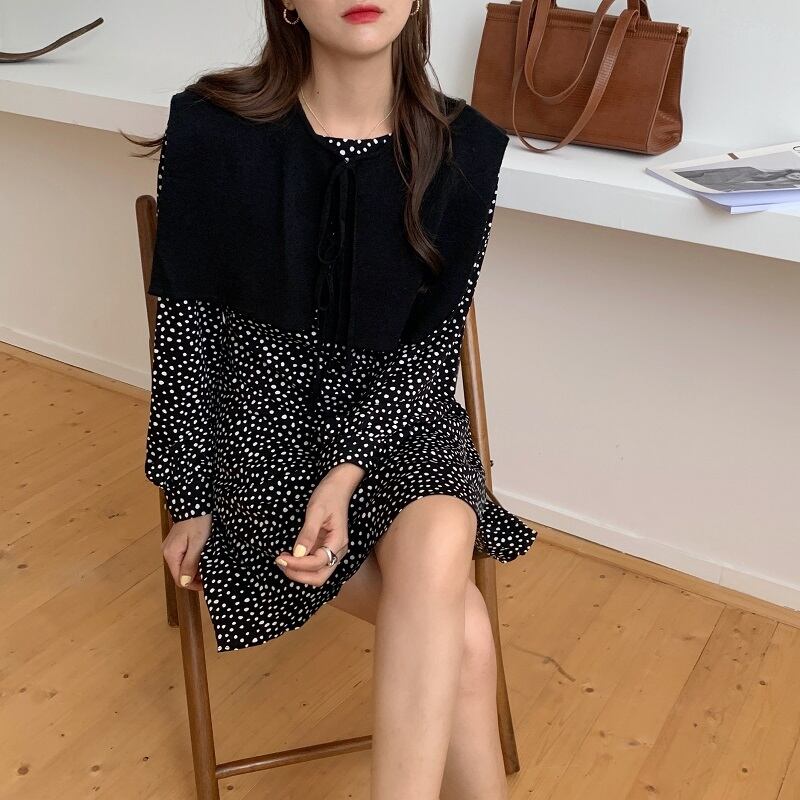 ブラックドレス ウェスト薄手スカート 韓国婦人99492781066