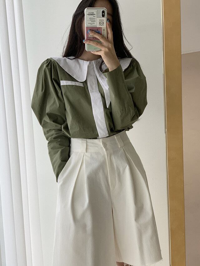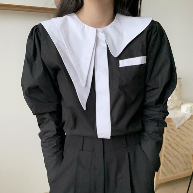 アシンメトリールーズスリーブシャツ ブラウス スプリング 春物 韓国婦人98657069113