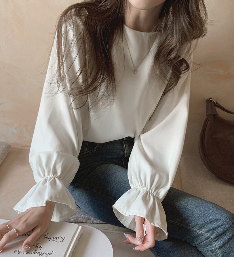 スタンダードスタイルスリーブシャツ トップス オータムウィンター ロング ランタンスリーブ レトロ 秋物 冬物 韓国婦人35311040061