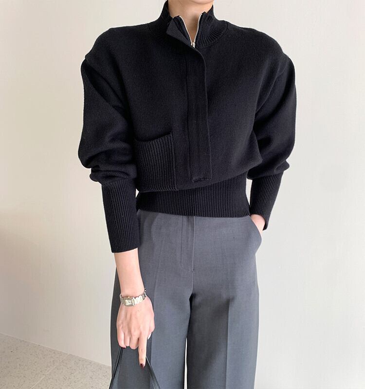 スプリングスタイルカラールーズジッパーソリッド ポケットセーター ニットレディース 春物 ソリッドカラー 韓国婦人17668332974