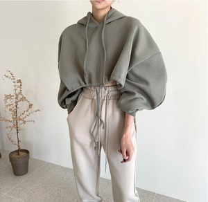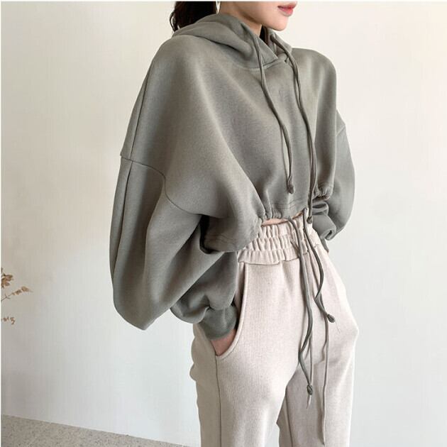 スプリングスタイルルーズフードショートセーター ロング ランタンスリーブ 春物 韓国婦人84853699590