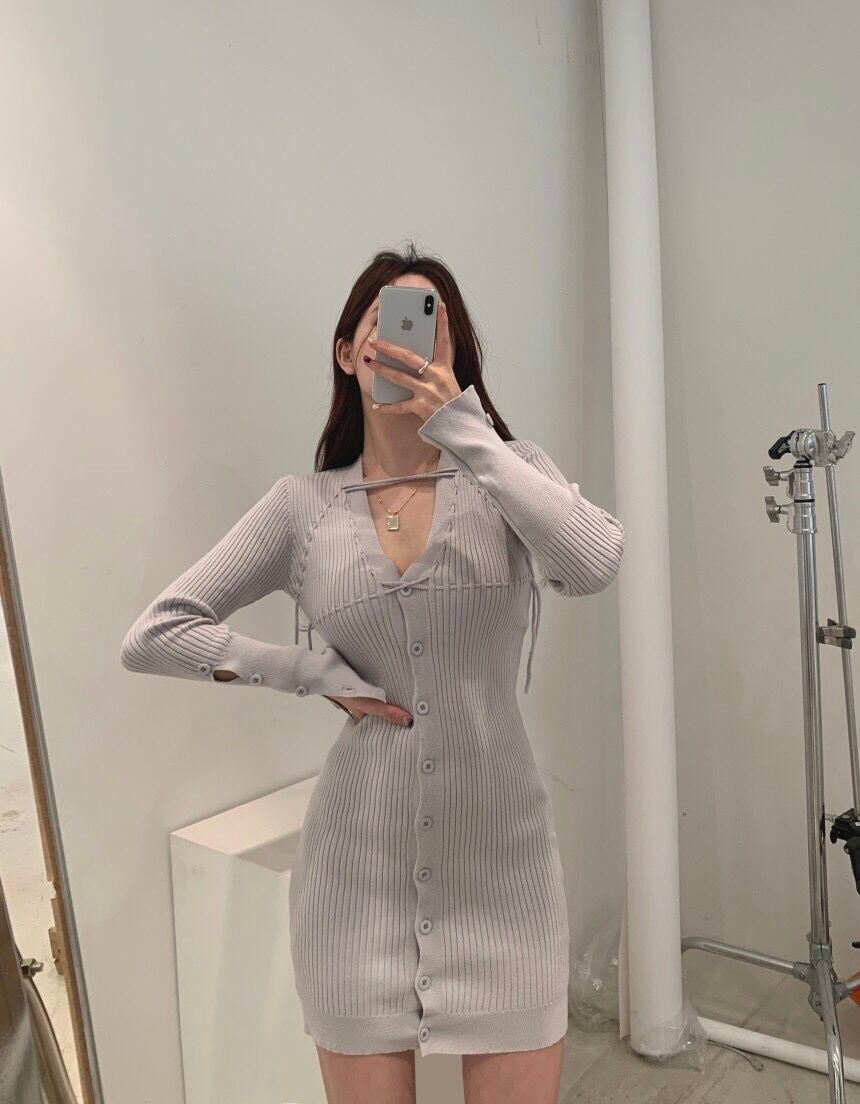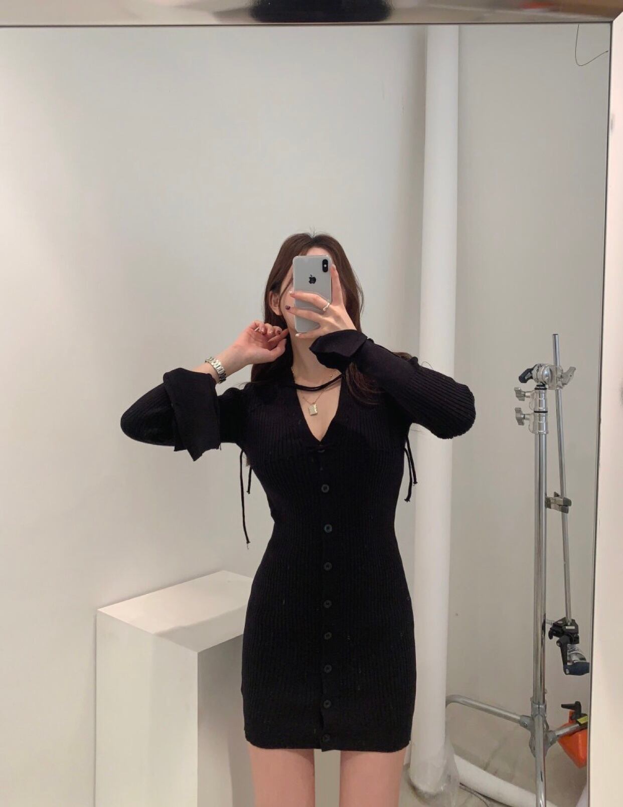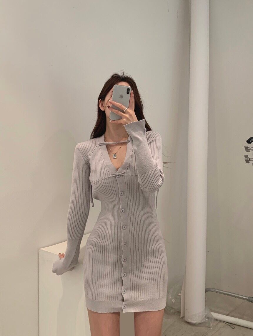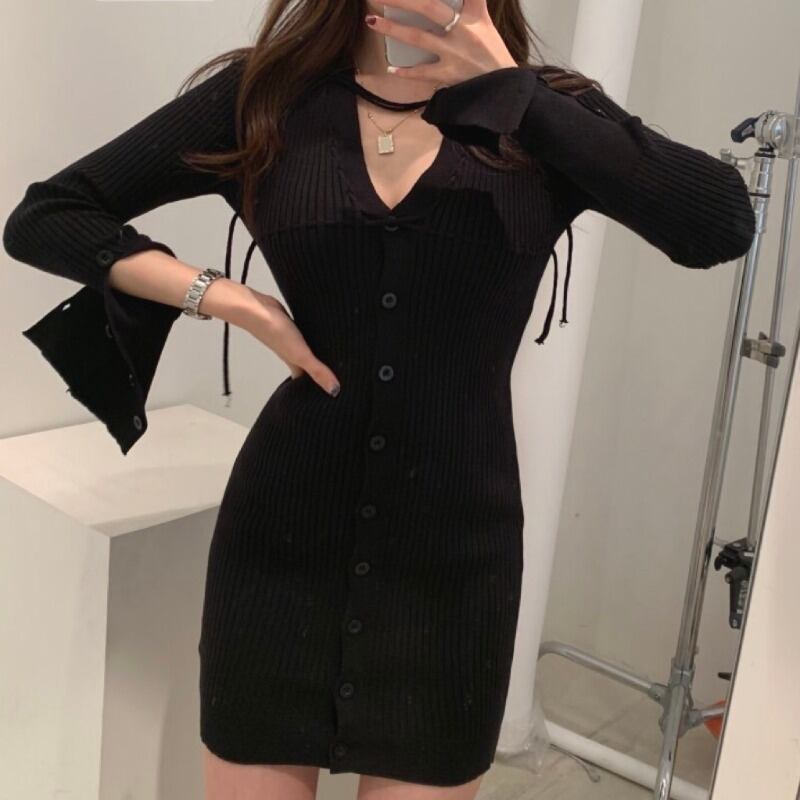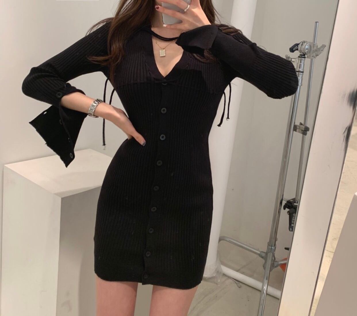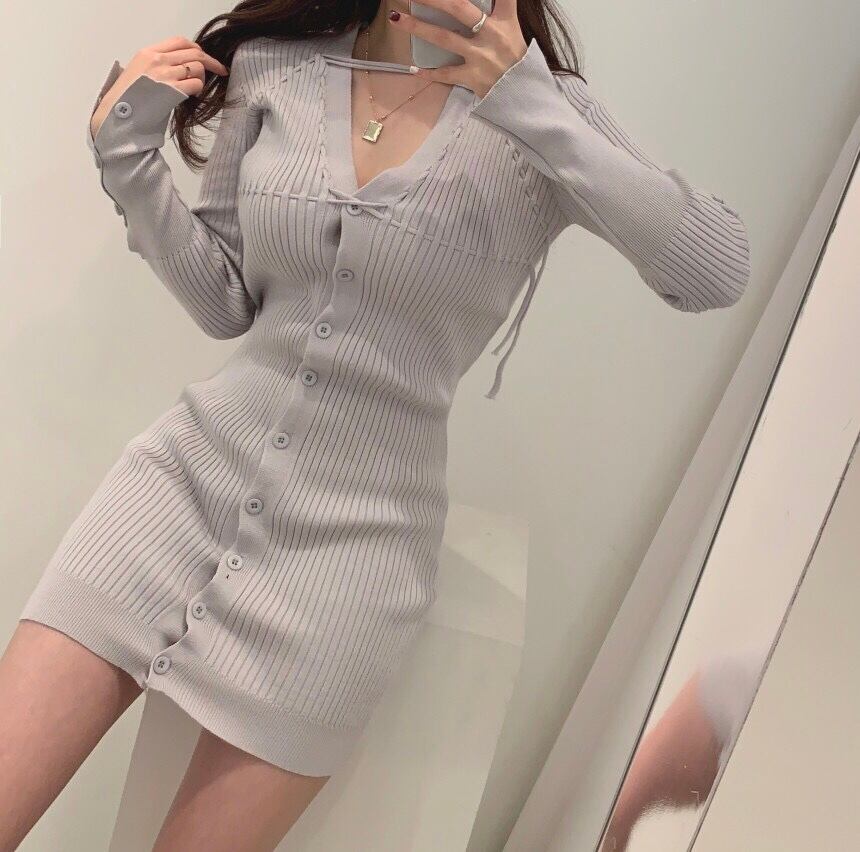 ニットドレス スプリングVネックスカート スリム 春物 韓国婦人26855688103