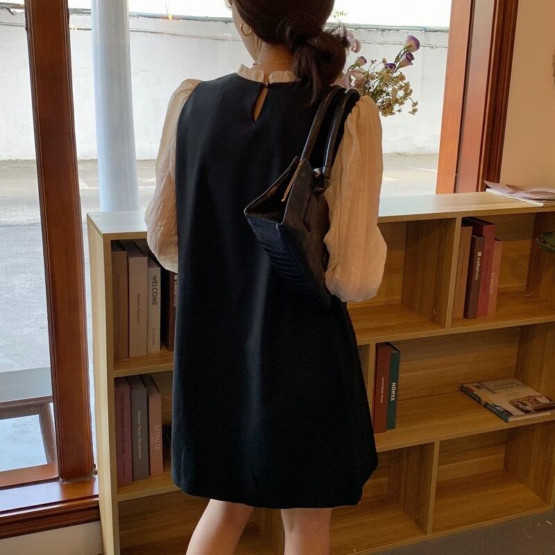 ブラックドレス スプリングスカート ウェスト薄手オータム 春物 秋物 韓国婦人8040375528