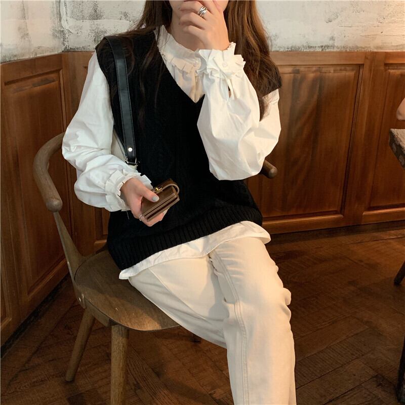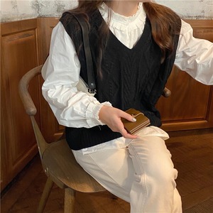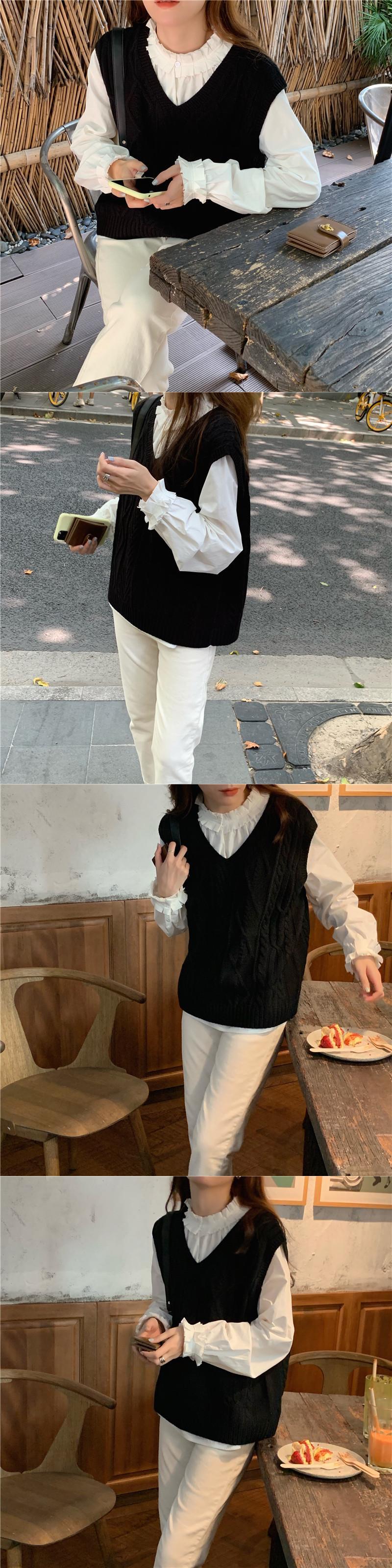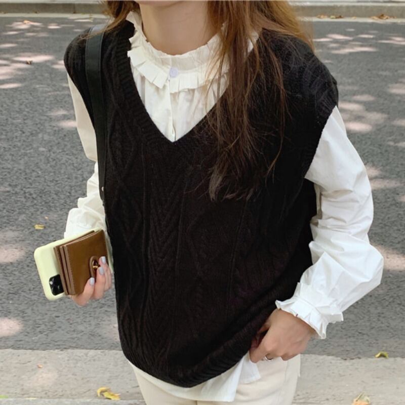 スプリングスタイルVネックセーター ノースリーブトップス 春物 韓国婦人74957245509