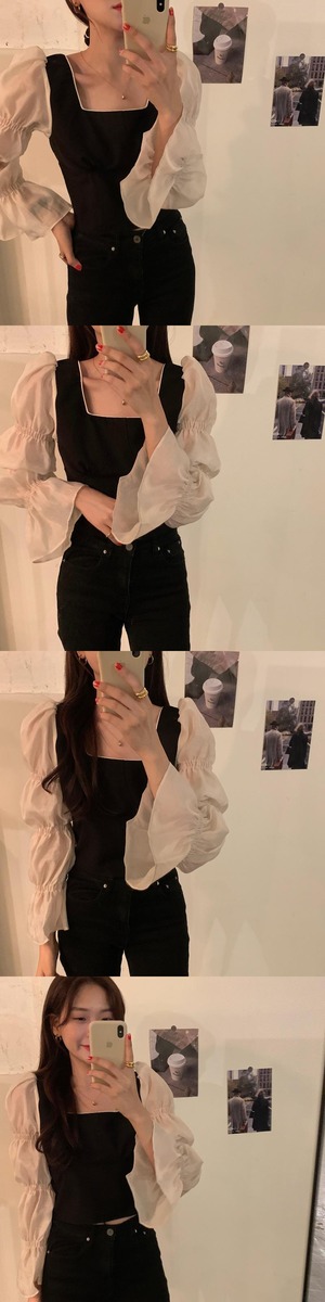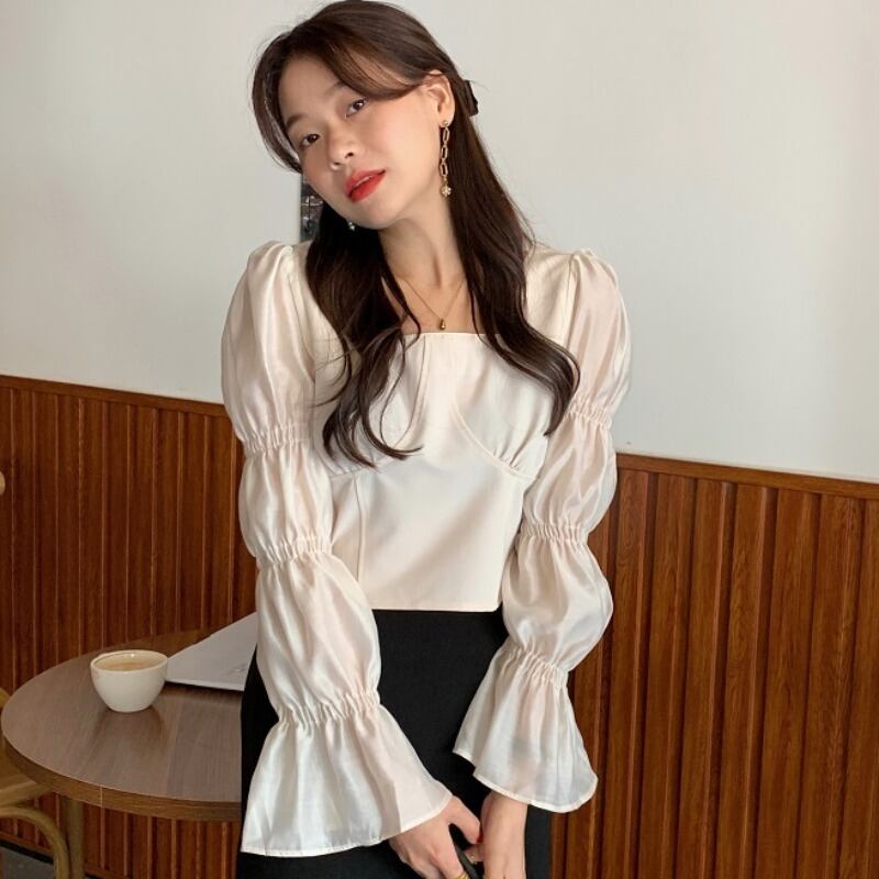 スリーブシャツ スプリングカラーショート長袖トップス ロング 春物 スクウェア 韓国婦人49197602874