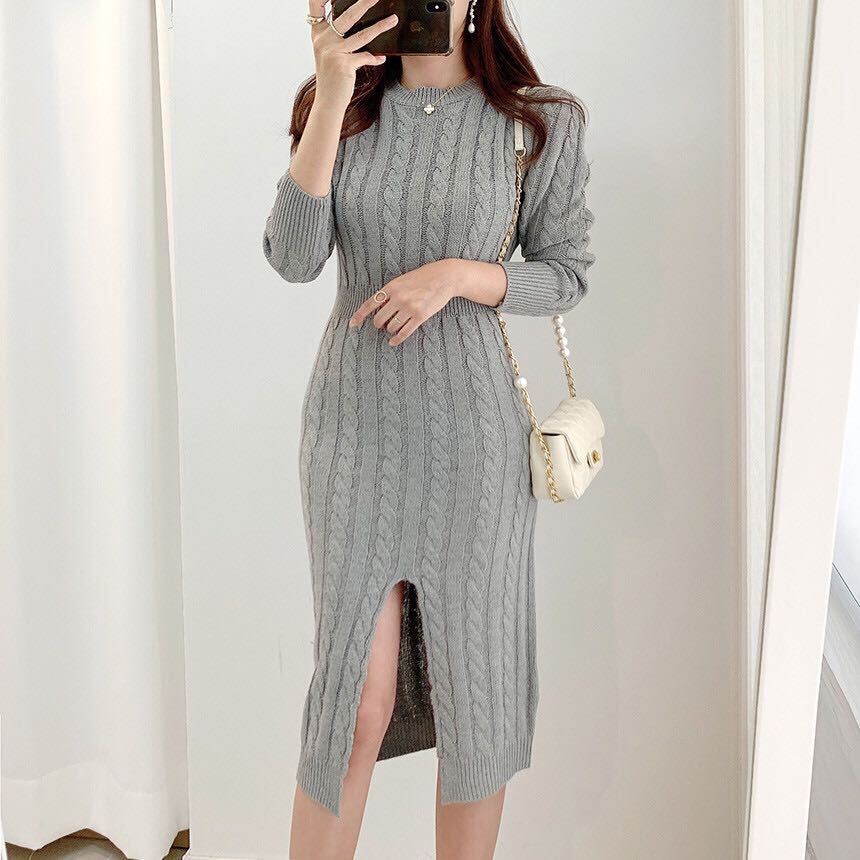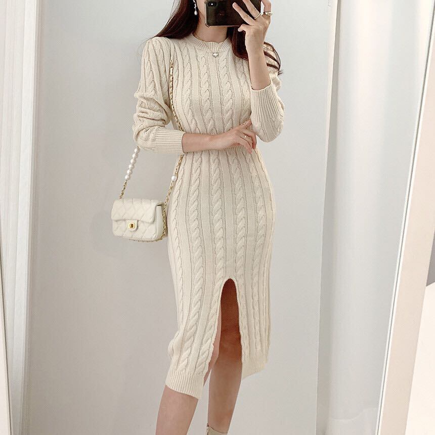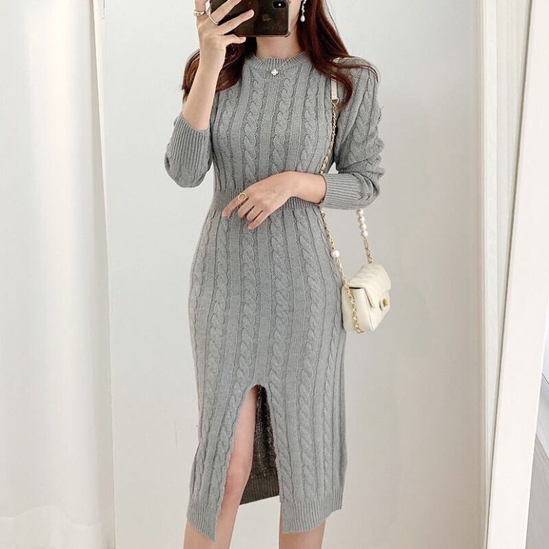 セーター スカート オータムウィンタースリムニットコート ドレス ロング 秋物 冬物 韓国婦人31610085890