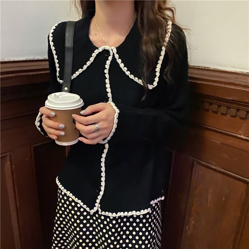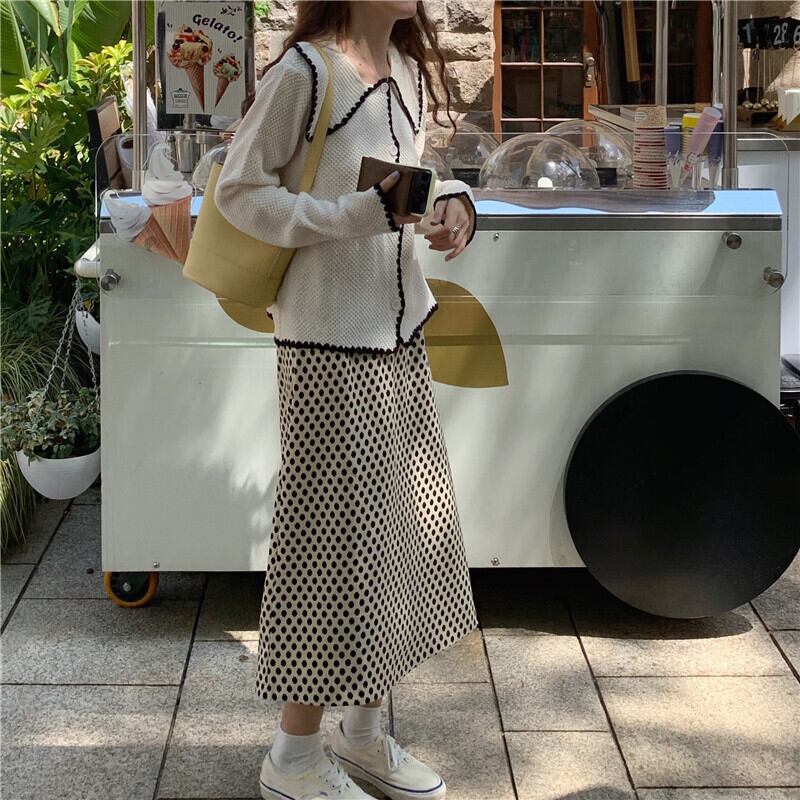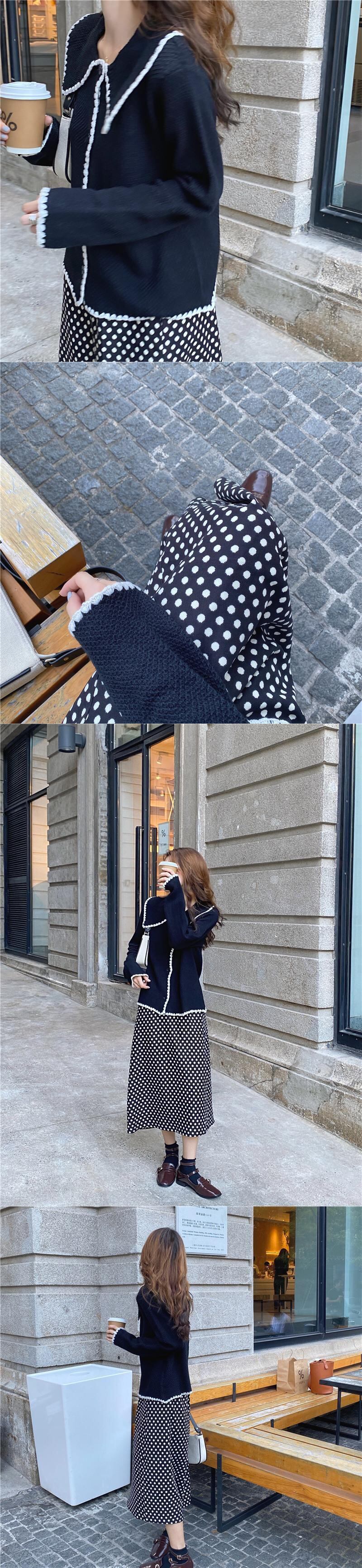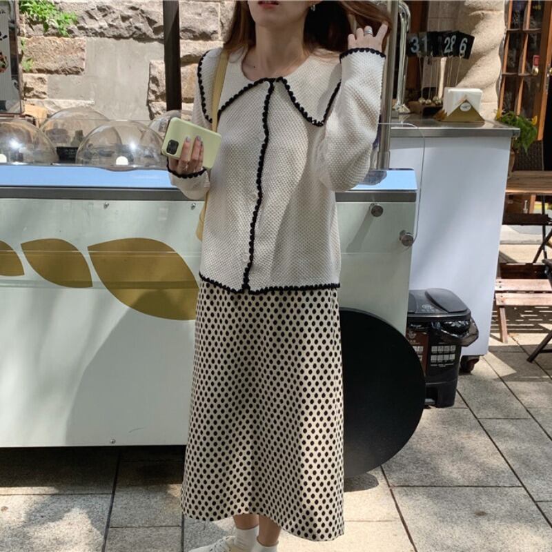 スプリングカラーカーディガンセーター ジャケット 水玉スカート 大人ガーリー スウィート キュート カジュアル 春物 韓国婦人55931229016