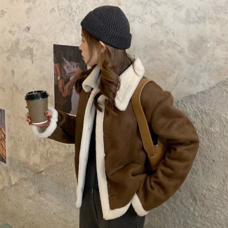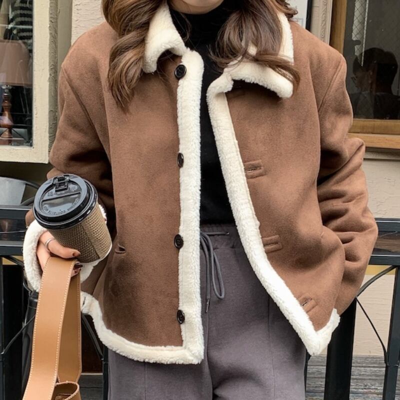 ウィンターカーキファーウールコート ルーズショートトップス 冬物 韓国婦人14037562117