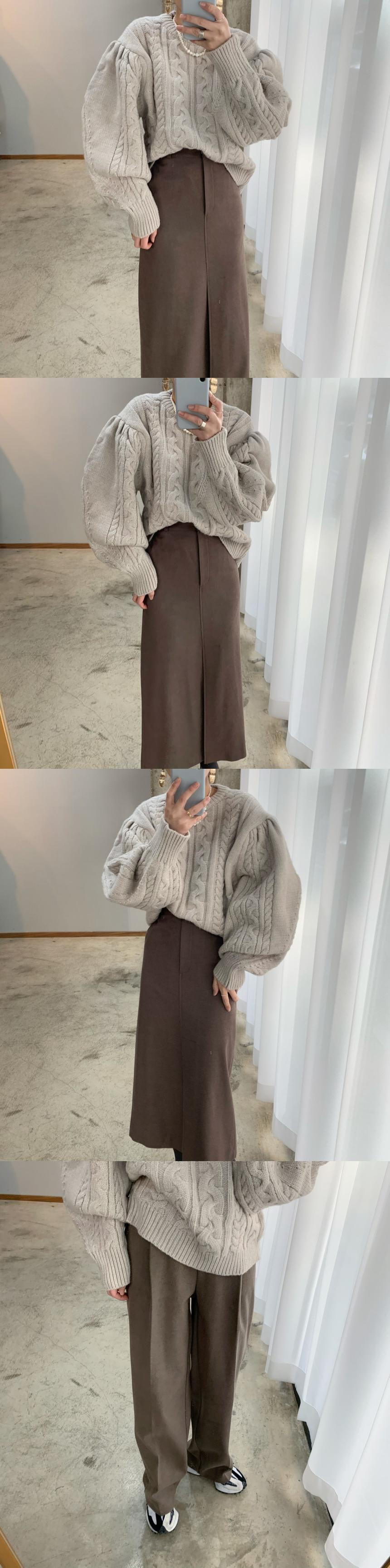 色:アプリコットセーター,紺のセーター,グレープリーツスカート