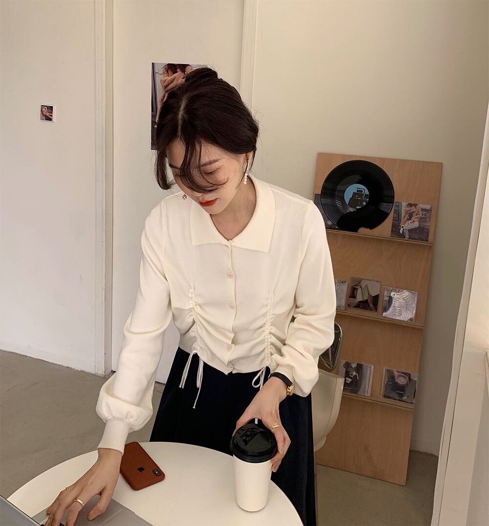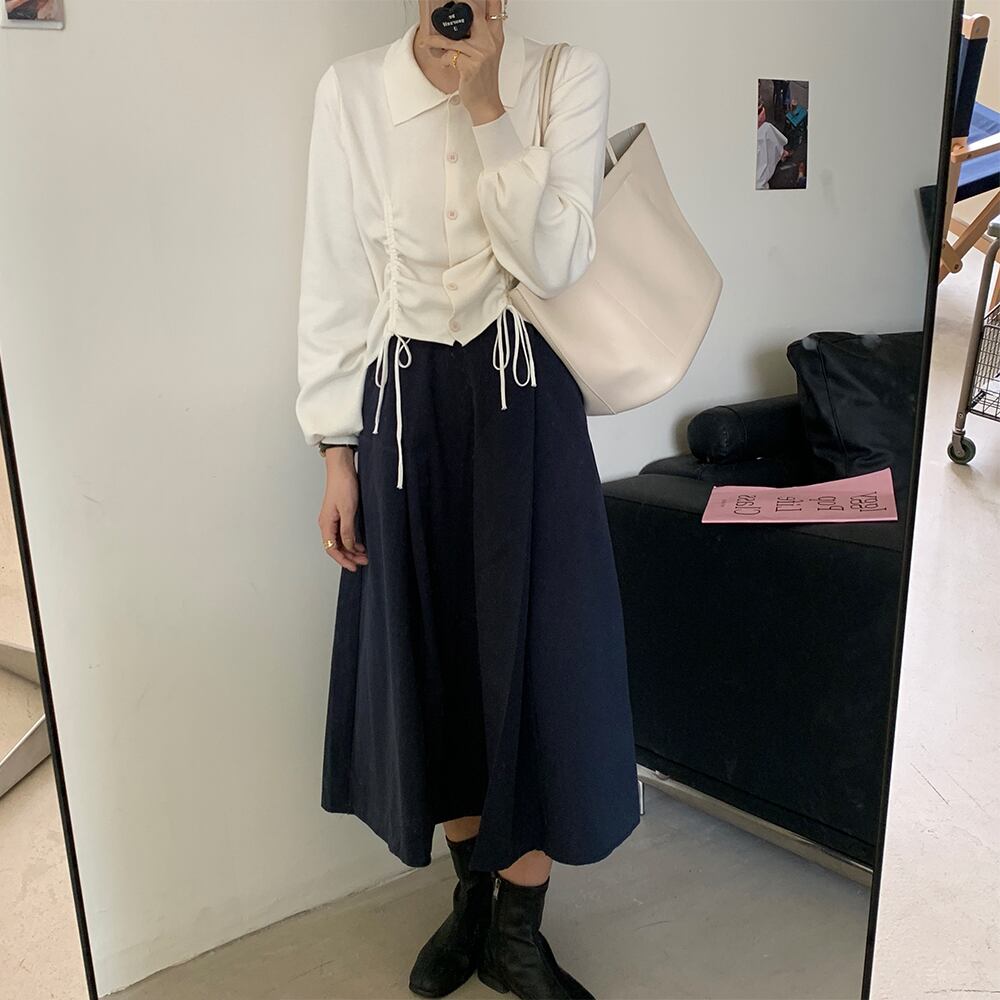 ギャザーセーター ダークハイウェストウェストAラインスカート レディース 韓国婦人35843725881