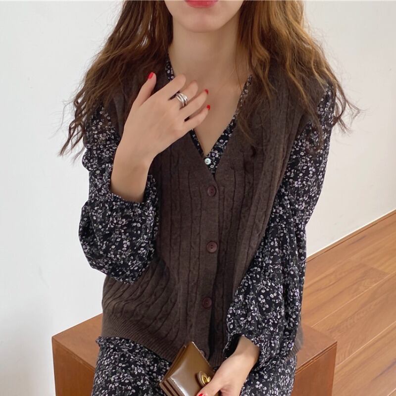 スタイルVネックパターンソリッド カラーニットカーディガンセーター レディース ソリッドカラー 韓国婦人8610156740