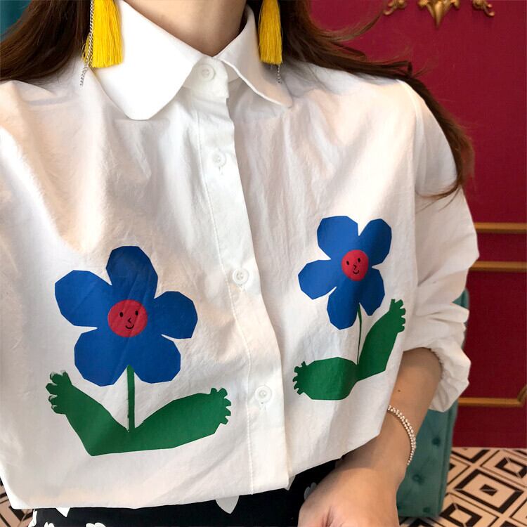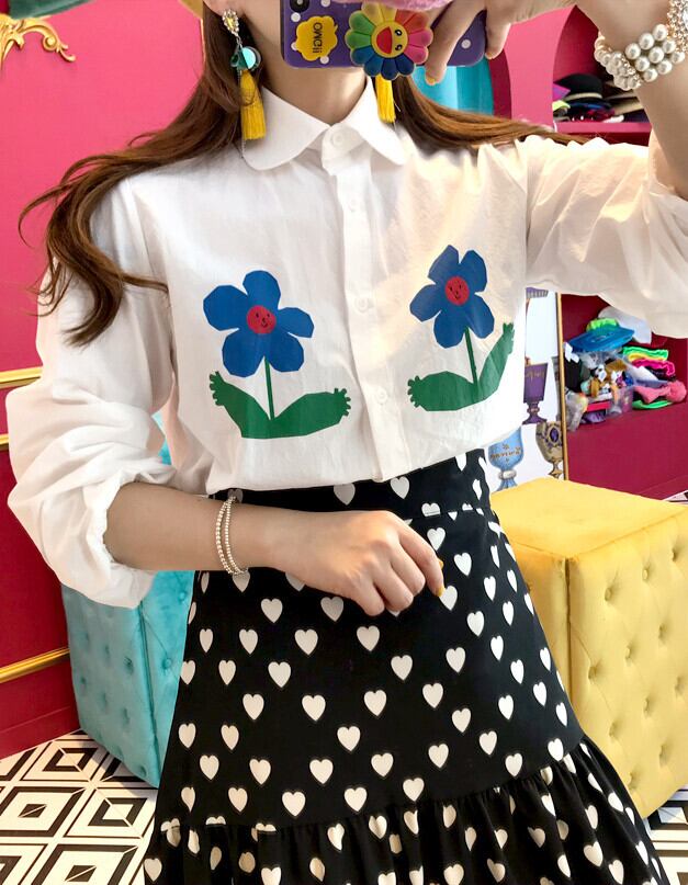 スプリングFlowerデザイン シャツ ハイウェストウェストスカート 春物 フラワーデザイン 韓国婦人57158621720