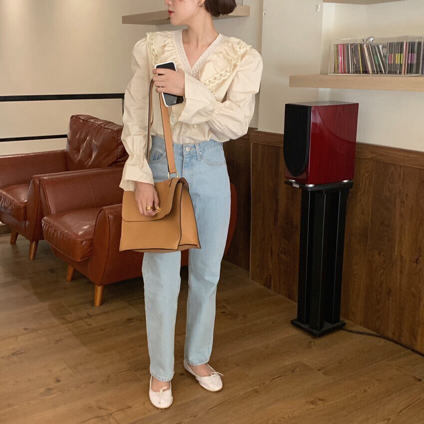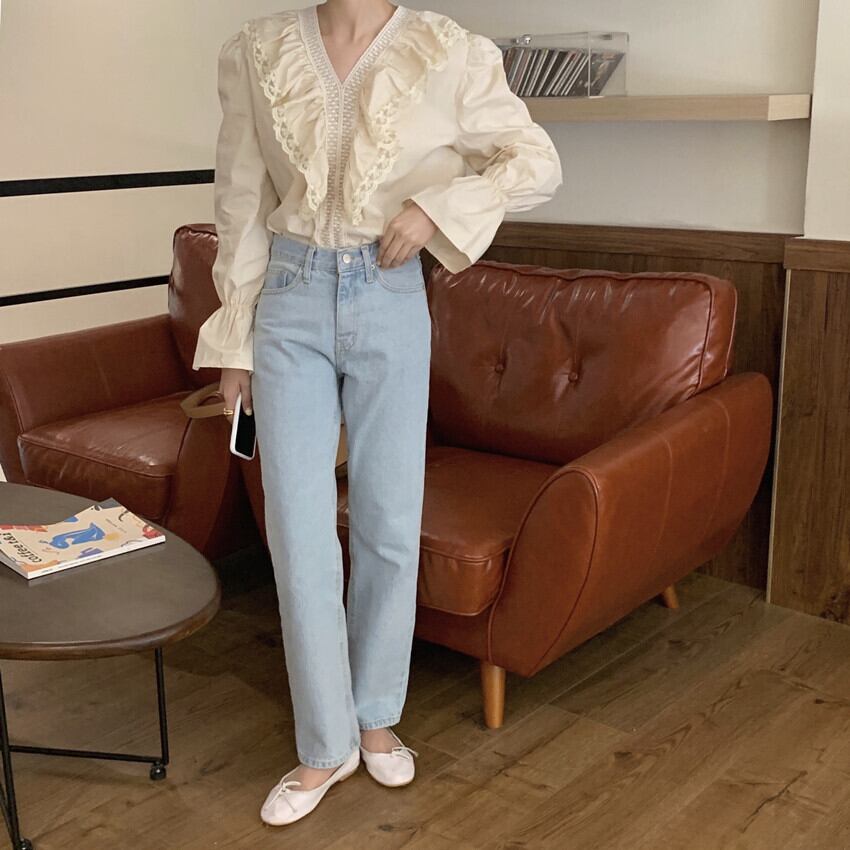 シャツ スプリングホワイトVネックレース ロング 春物 韓国婦人14034309425
