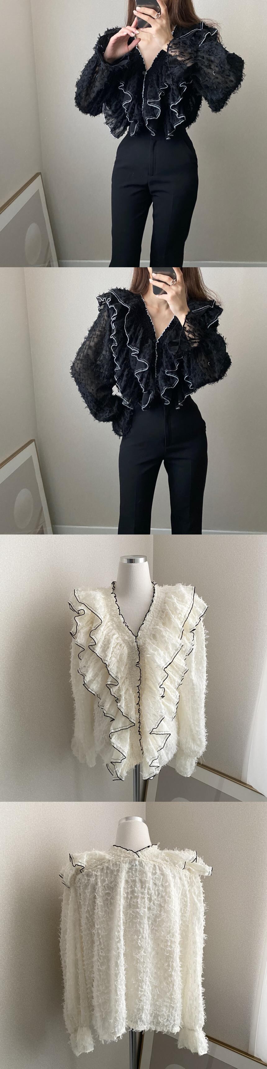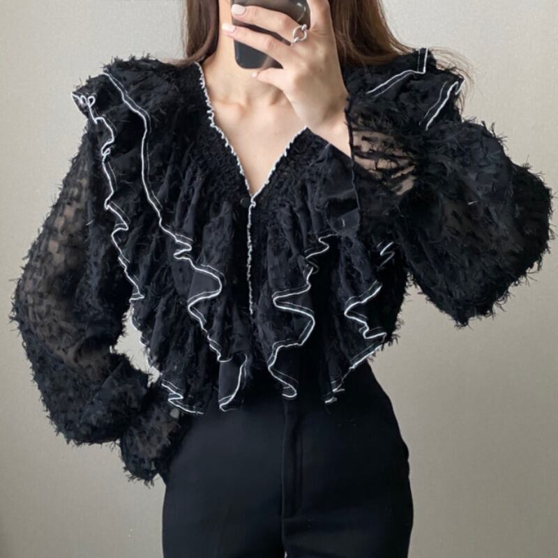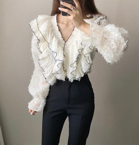 スプリングルーズVネックホワイトブラウス 春物 韓国婦人62394913442