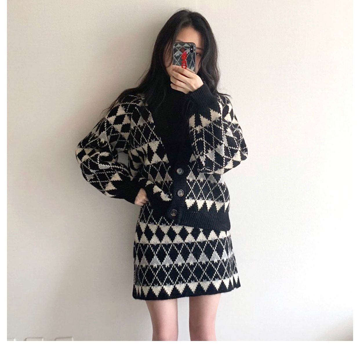 スプリングスタイル薄手Vネックカーディガンセーター スカート 春物 韓国婦人66658584626