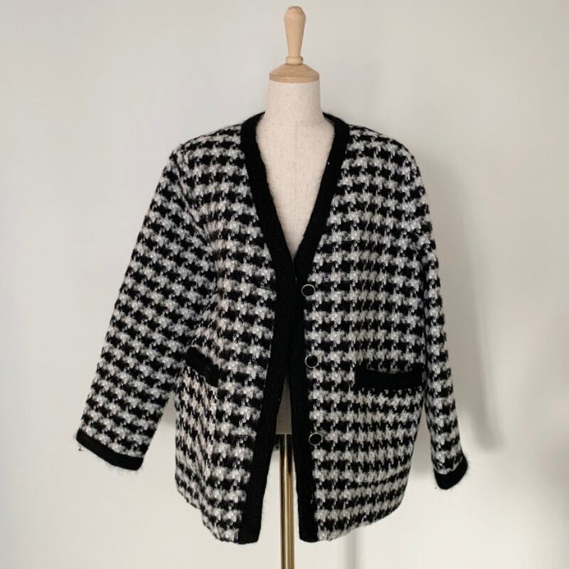 スプリングオータムツィードスタイルカラースタンダードVネックショートジャケット レディース レトロ 春物 秋物 韓国婦人71042298944