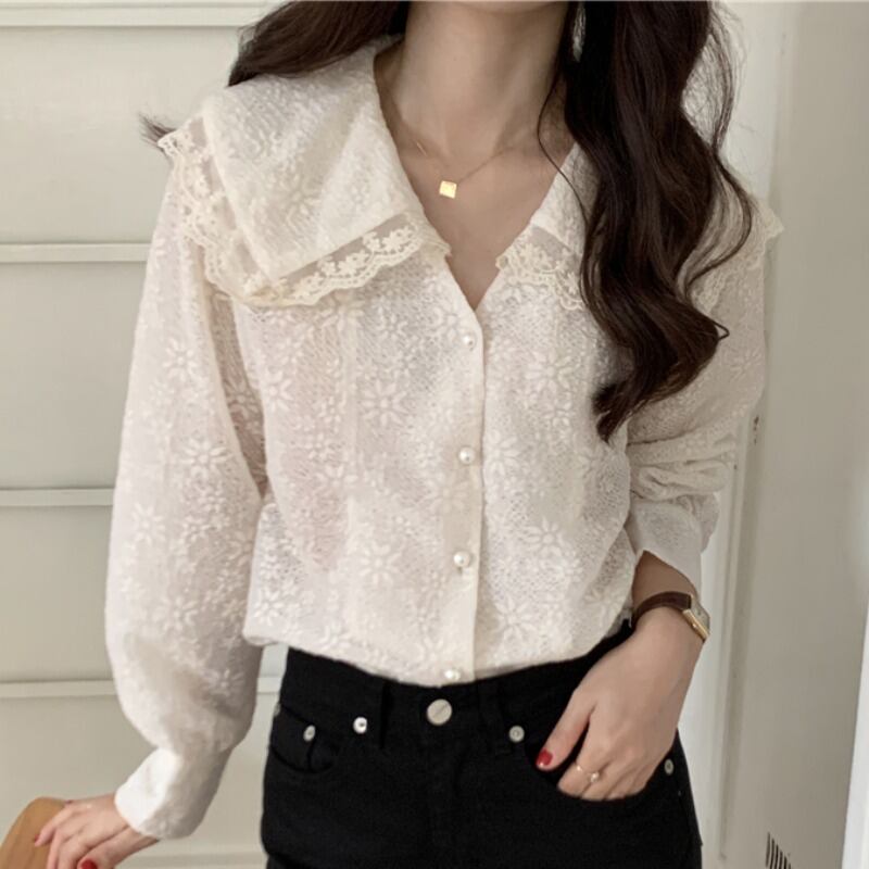 スプリングスタンダード刺繍レースシャツ スタイルカラートップス レトロ 春物 韓国婦人44258031837