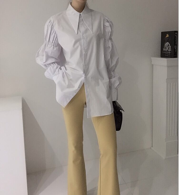 スタンダードスタイルカラールーズスリーブシャツ トップス レディース レトロ レース 韓国婦人87589156893