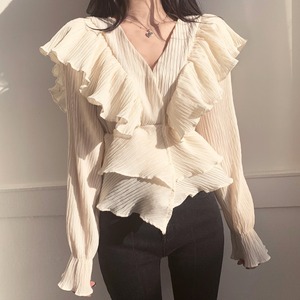 スタイルクロスVネックウェストプリーツシャツ トップス レディース ロング 韓国婦人29021953803