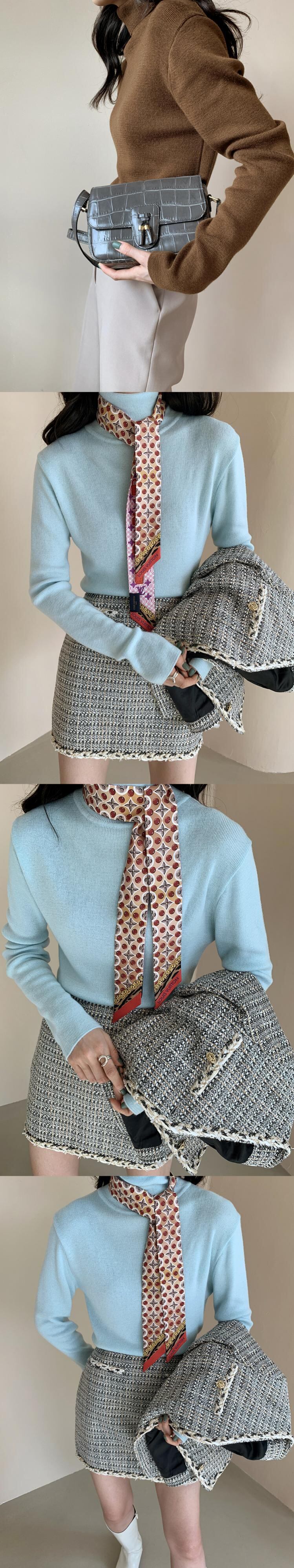 オータムウィンターブルーホワイトスリムフィットプルオーバー セーター レディース ロング 秋物 冬物 韓国婦人98045380103