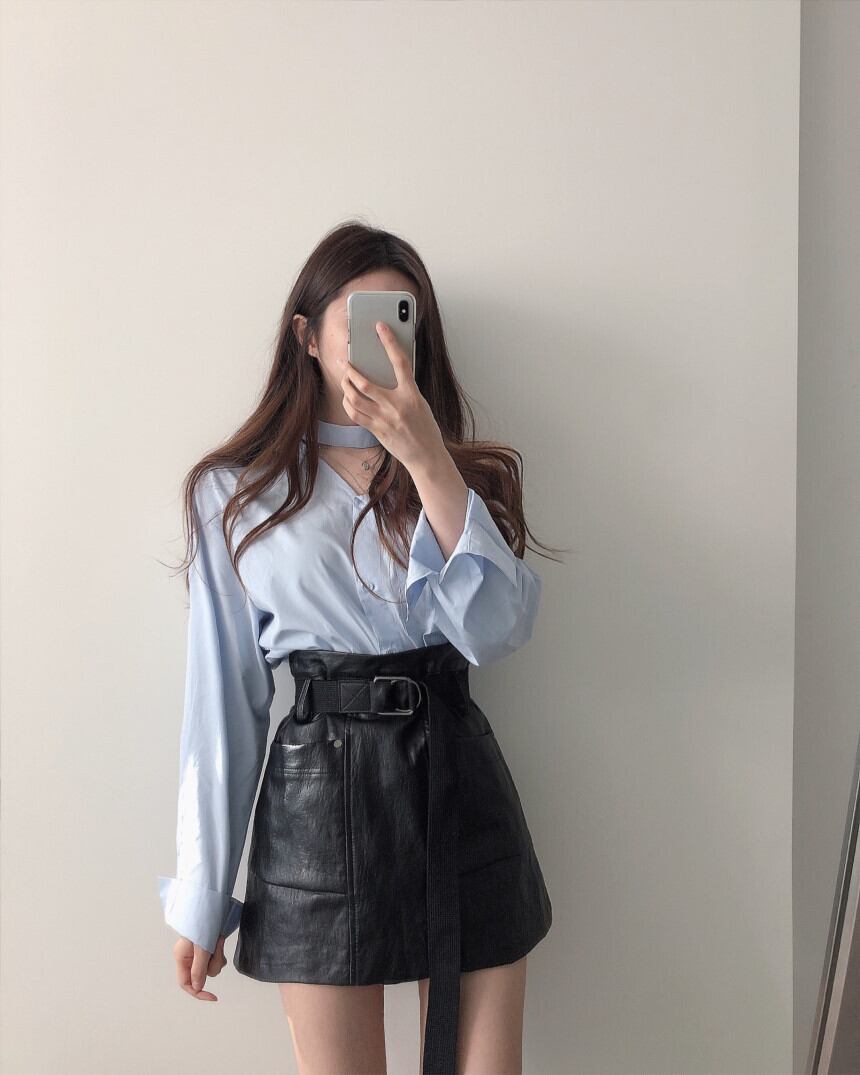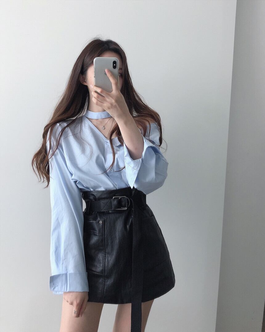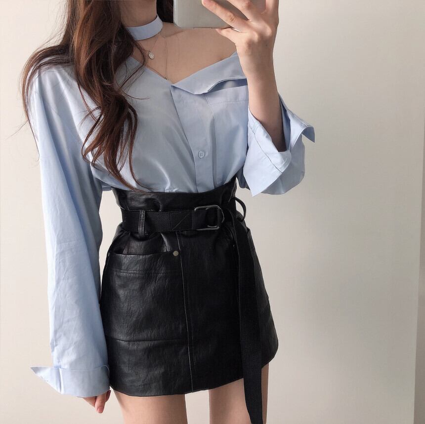 ストラップレスシャツ ハイウェストウェストスカート ショートスプリングオータム 春物 秋物 韓国婦人82003175993
