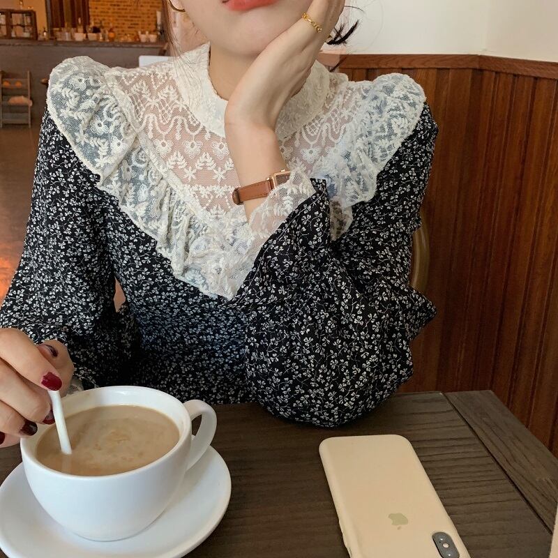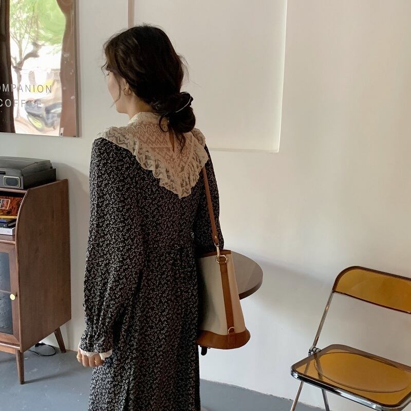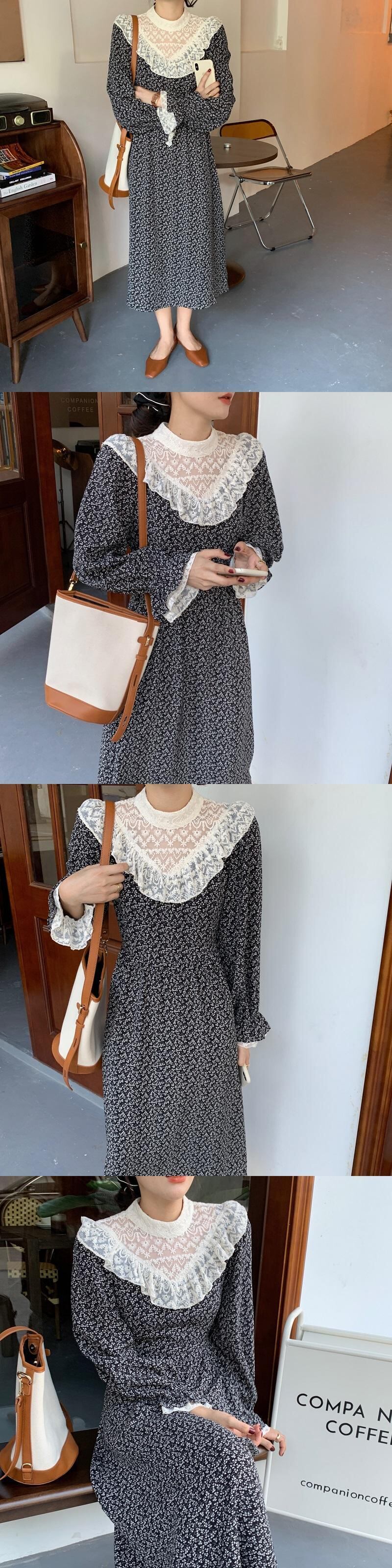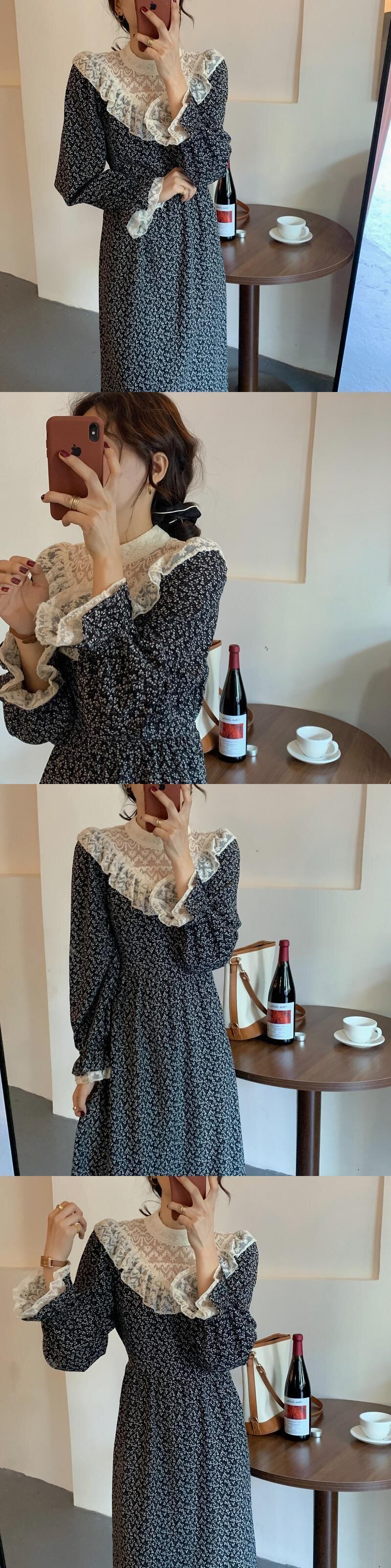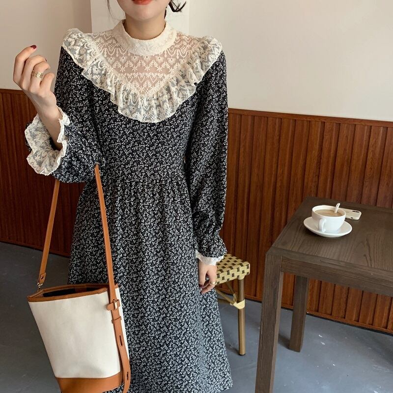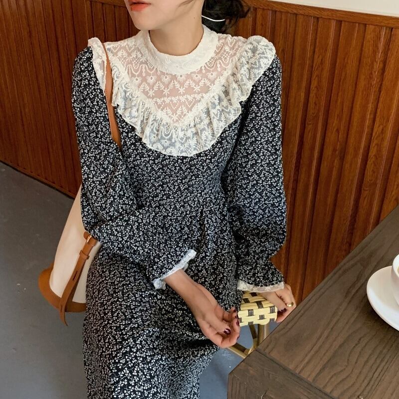 スプリングスタイルレースフローラルウェストスリーブドレス レッド 春物 花柄 レースアップ 韓国婦人33326456952