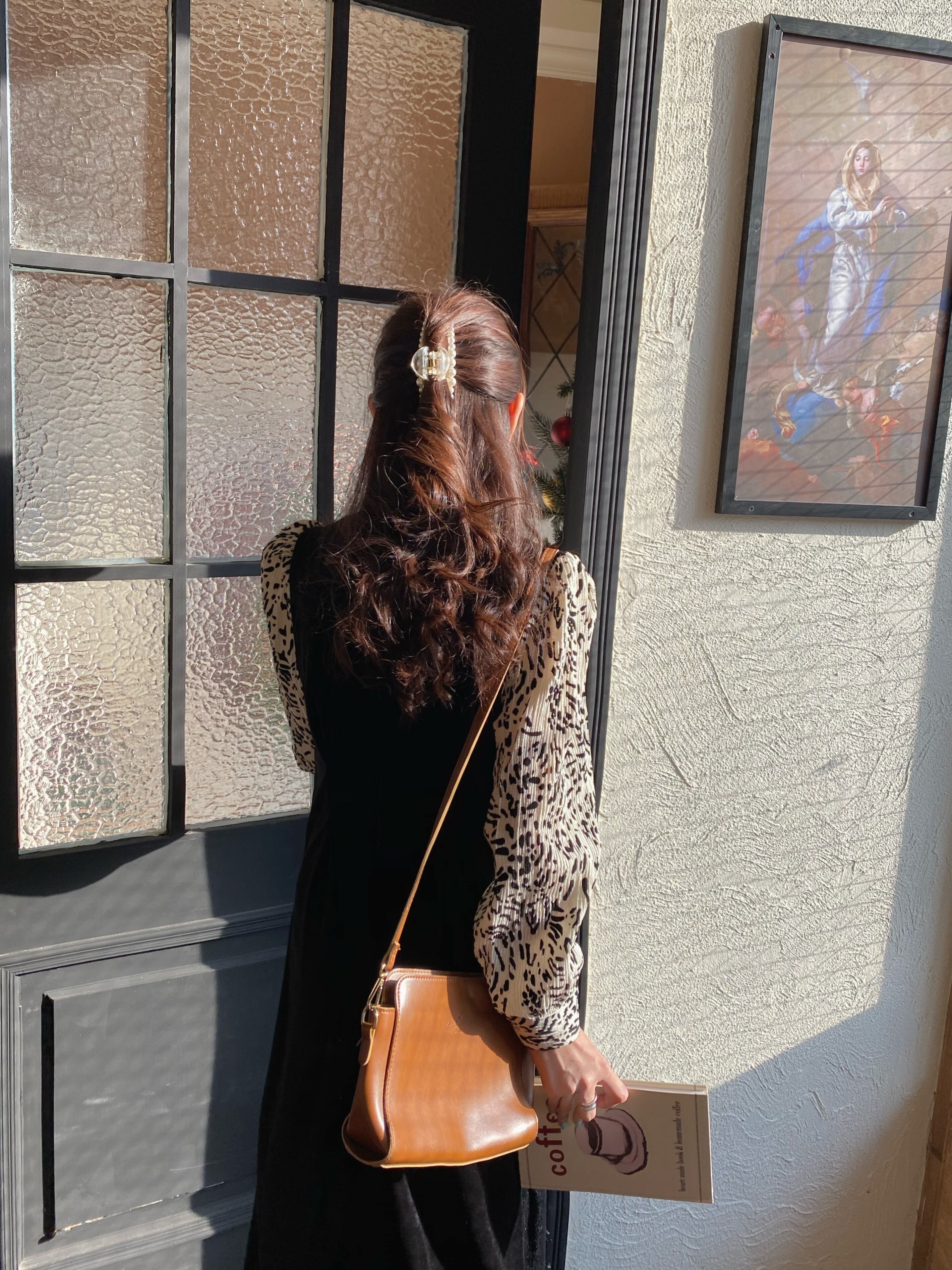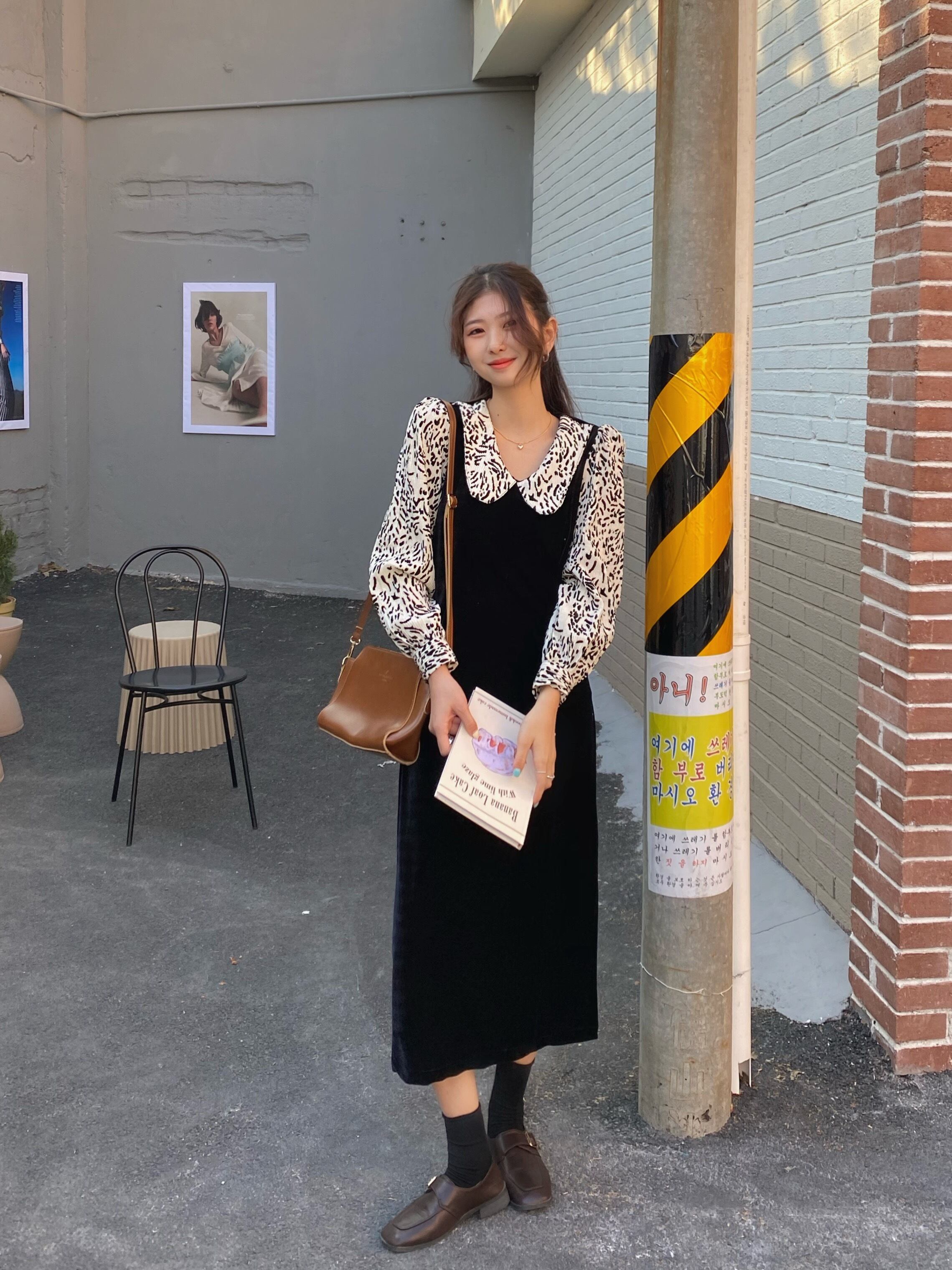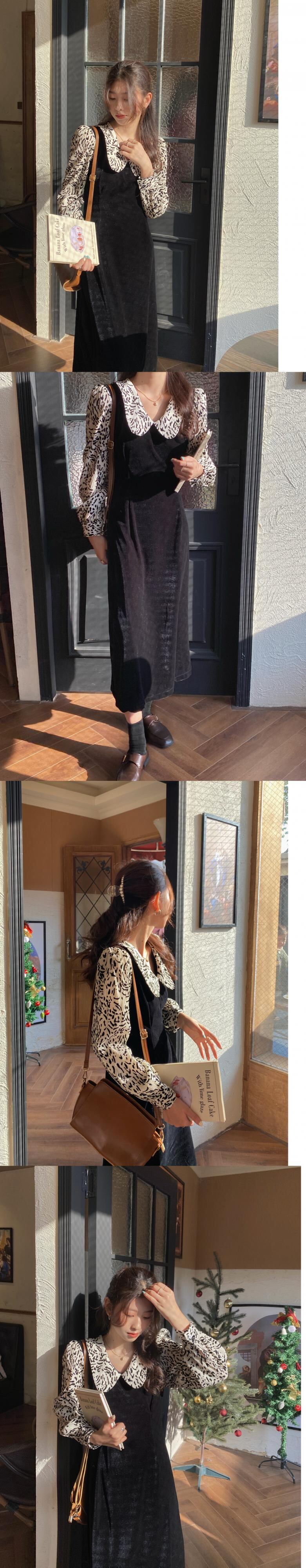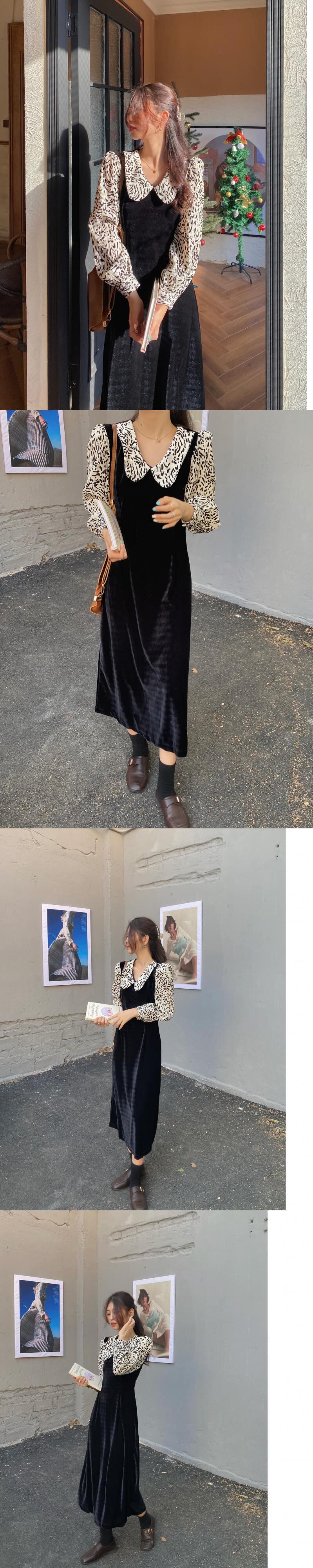 スプリングスタイルカラーウェストレオパードプリント柄スリーブベルベットドレス 春物 ステッチ 韓国婦人52334087940