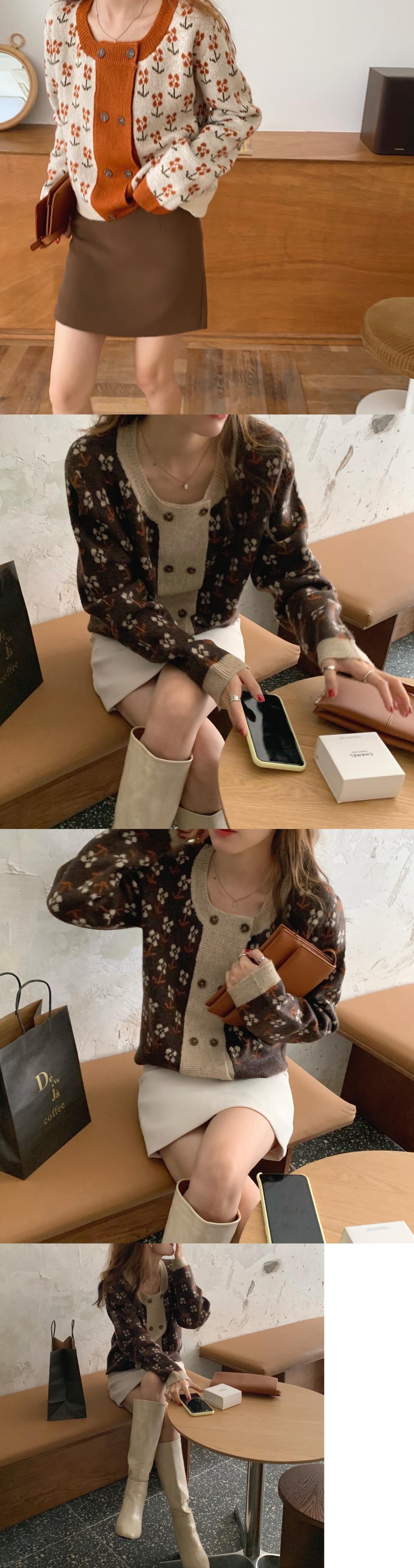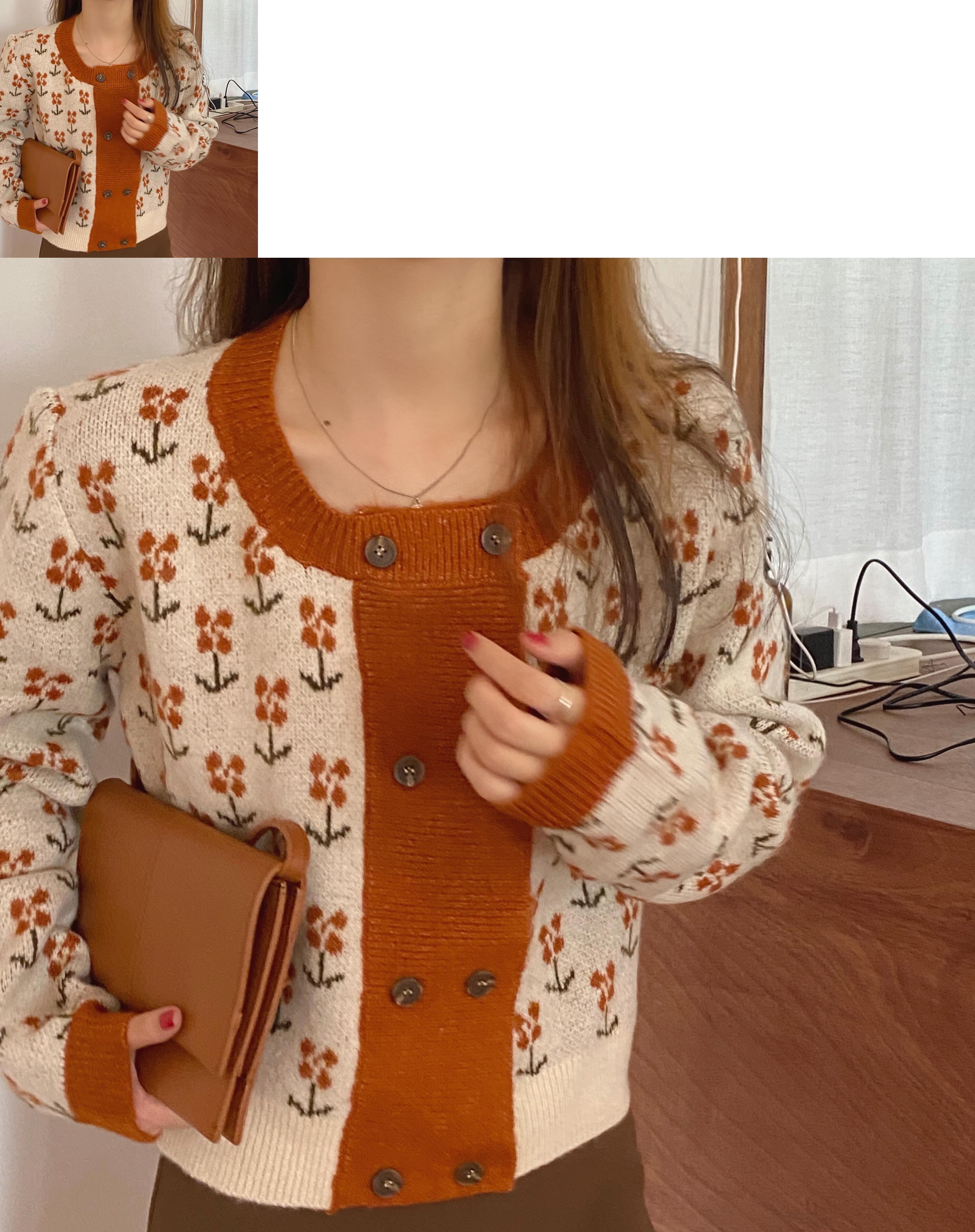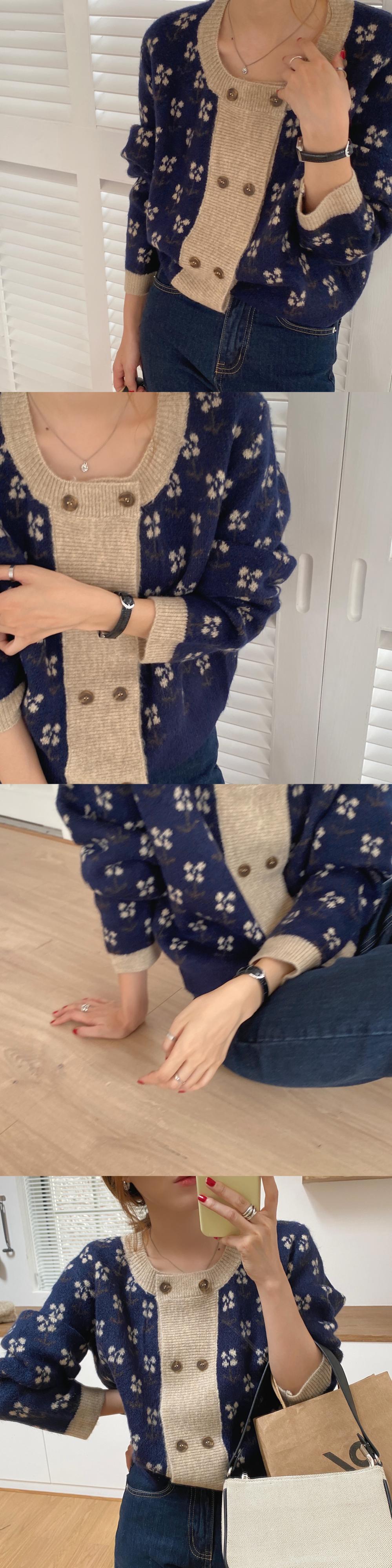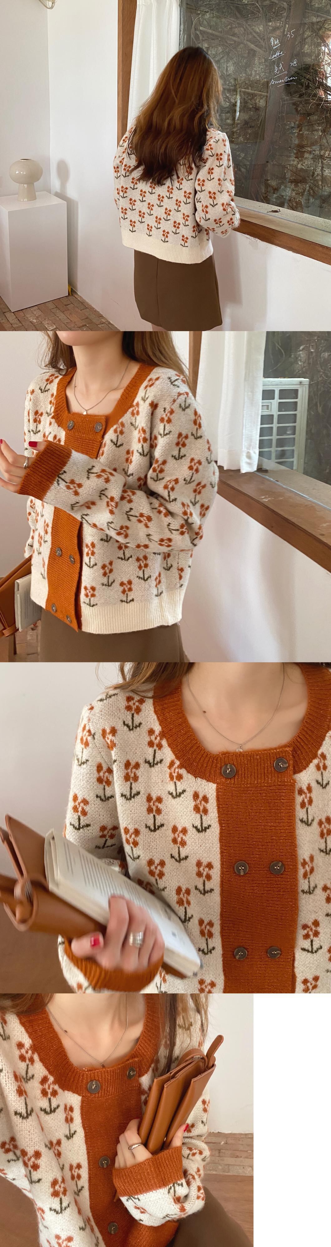 セーター スプリングダブルブレストプリント柄カラー ロング 春物 韓国婦人61997595395