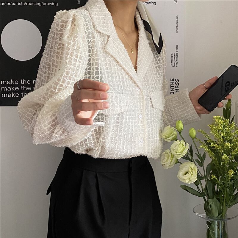 スプリングスタンダードルーズシャツ レディース ロング レトロ 春物 韓国婦人77783105937