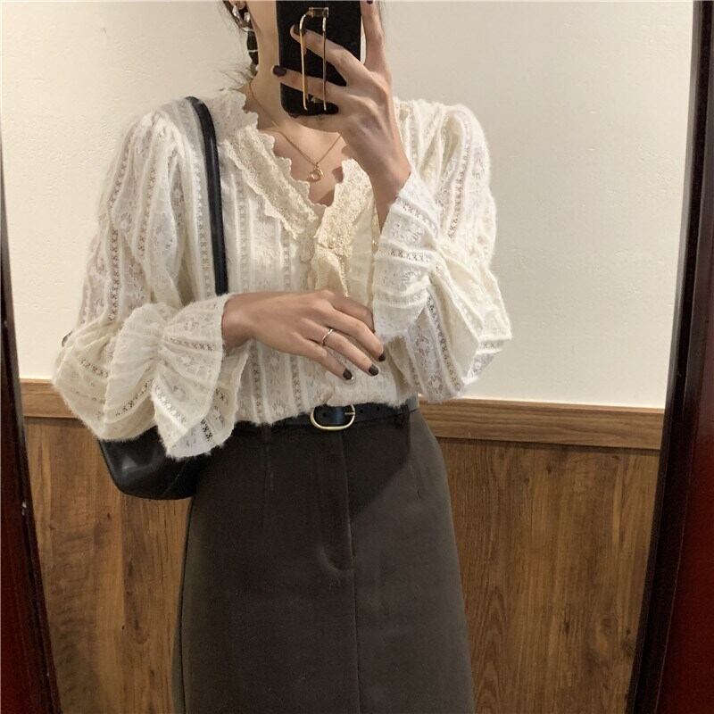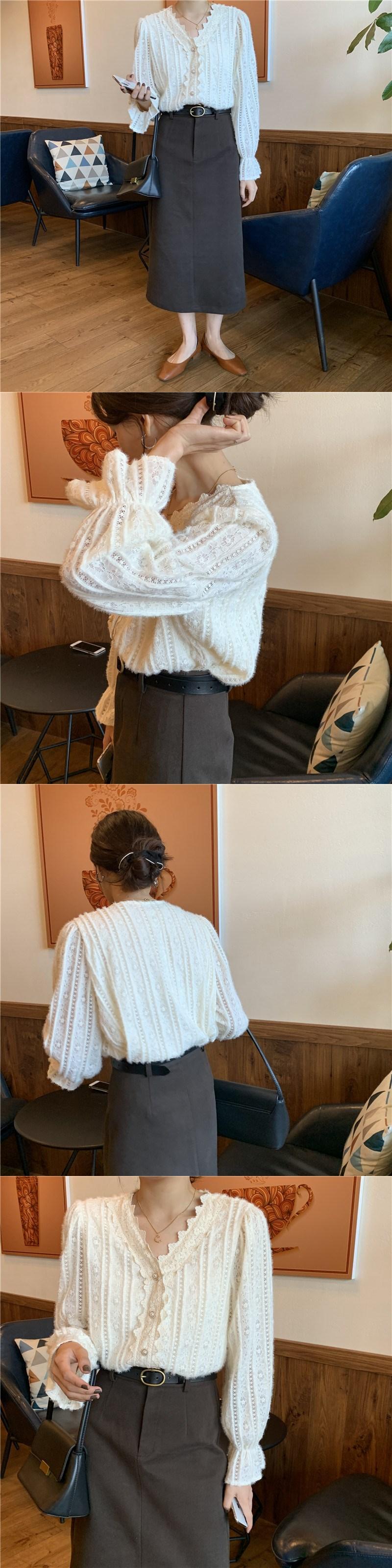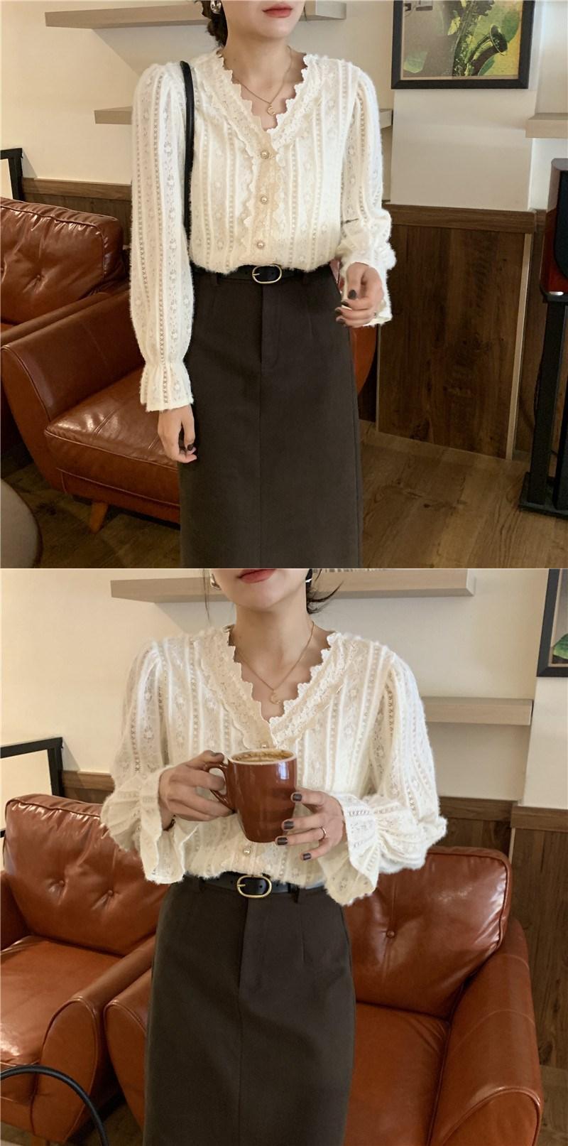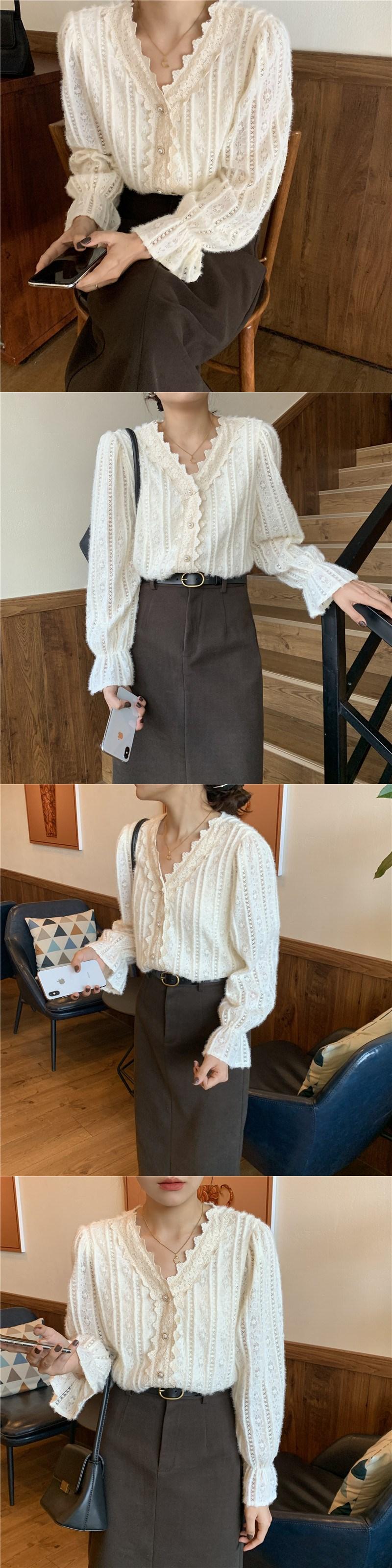 スタイルレースVネックルーズシャツ レディース ステッチ 韓国婦人49835282620