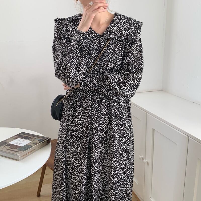 サイド長袖スリーブルーズウェストフローラルシフォンドレス ロング 花柄 韓国婦人66389217619